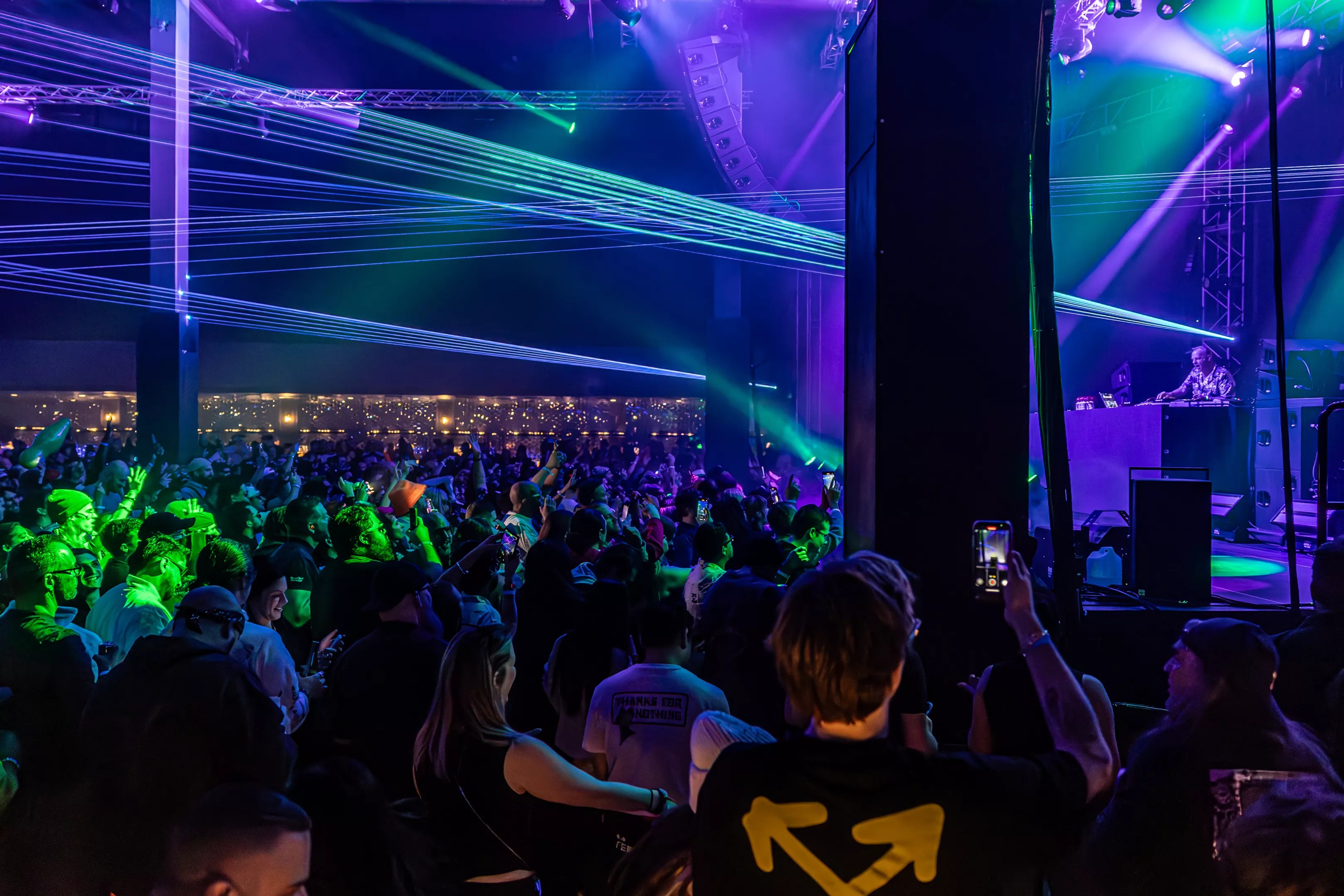 The room also has impressive lighting and a large video wall that blends in perfect harmony with the sound system. This helps to fully immerse the concertgoer in the experience. Whatever Silo spent on this light and sound system, it was so worth it. The music had all the punch you’d want but was not deafening and sounded just as fantastic no matter where you stood in the room. There was a definite warehouse feel that nods to original rave culture, but the venue feels brand-new and sparkly clean.