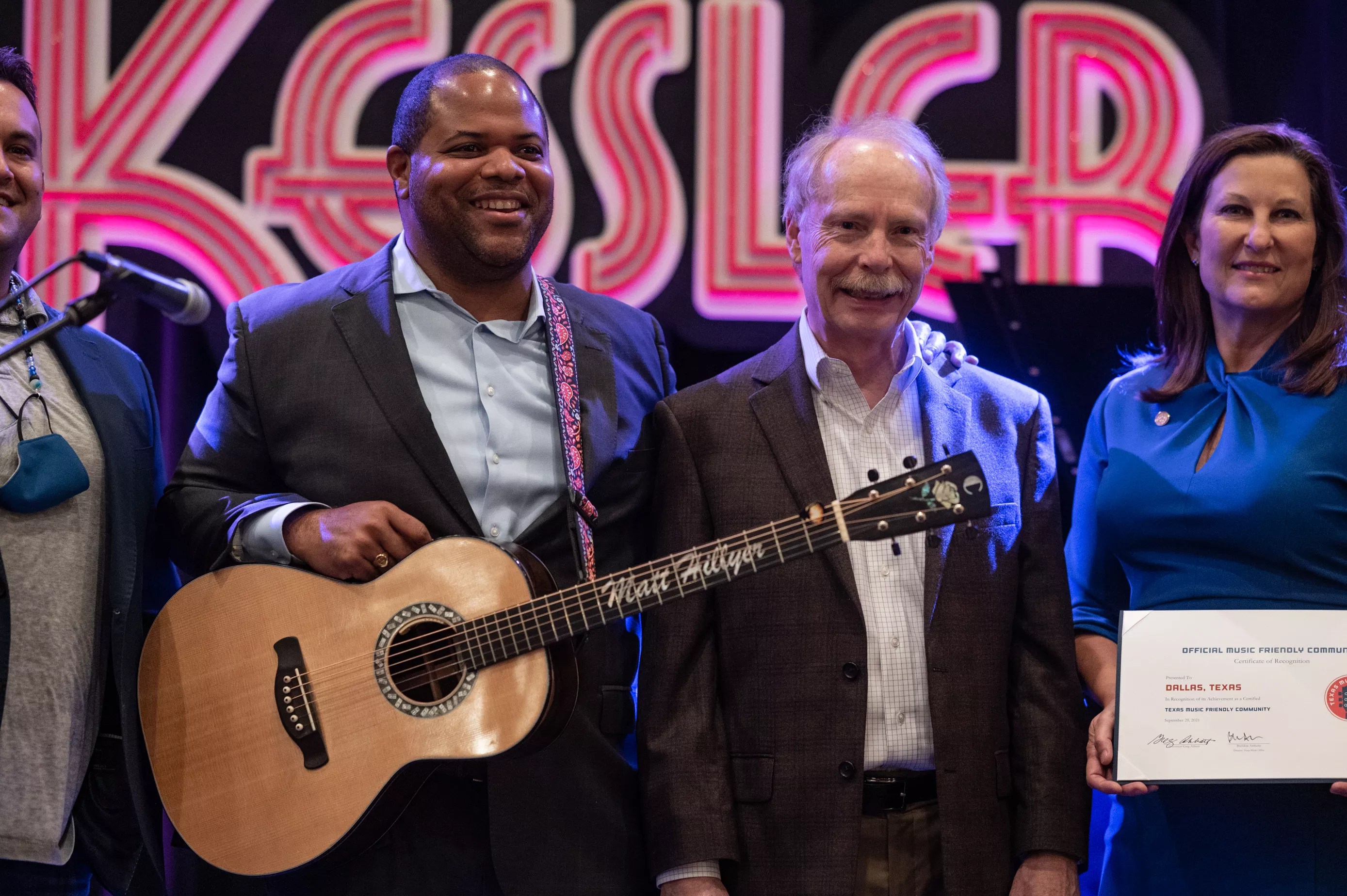 After the ceremony, local music industry movers and shakers Edwin Cabaniss and Thomsen were already in a spirited, collaborative spitballing session with musicians Keite Young, who performed at the ceremony, and Arlington Jones. Cabaniss, who owns the Kessler and is working to purchase and restore the historic Longhorn Ballroom, noted that overcoming planning, zoning and permitting issues is a major hurdle in any historic reconstruction project and building relationships with the city is crucial, so a music-focused partnership with local leaders can only help.