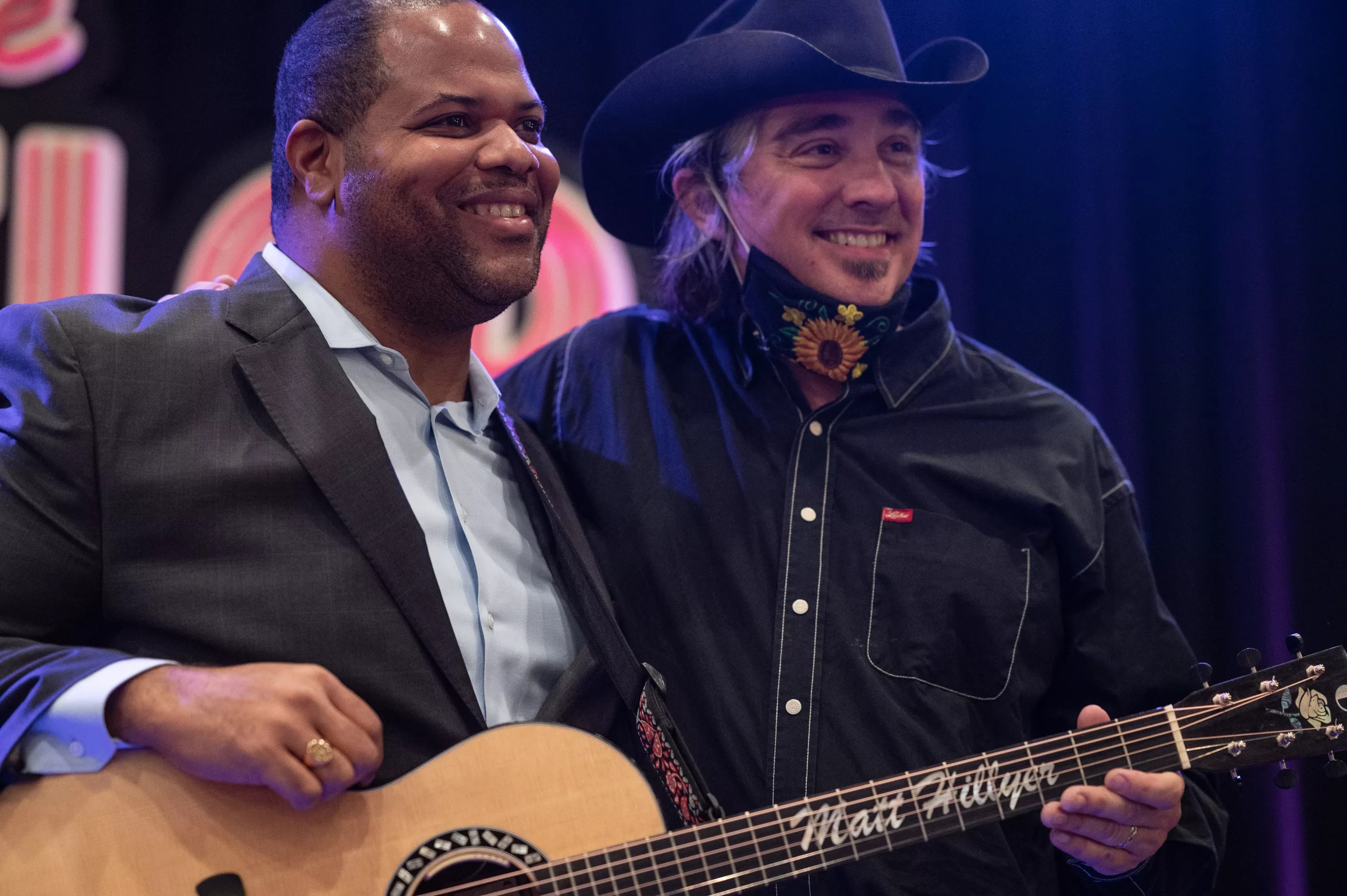 Brendon Anthony, director of the Texas Music Office with Edwin Cabaniss (left).