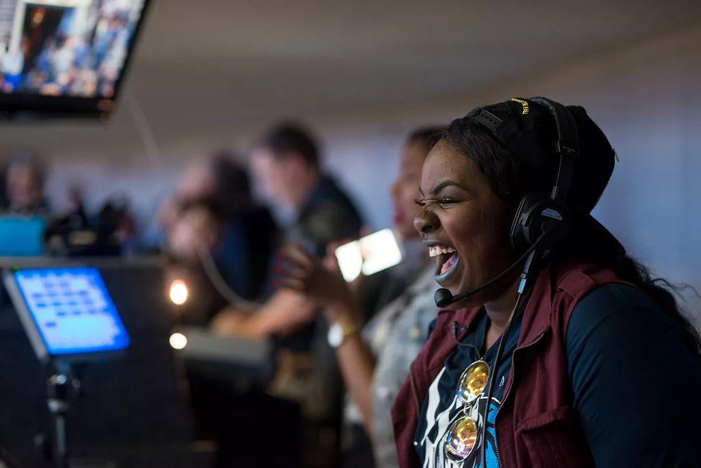 But not everybody can do this job. And that’s made apparent several times throughout the pre-game and game. When one of the computers goes down and she’s suddenly forced to work with only one, causing half of her logged sounds to be unavailable, she never hesitates. She uses the sounds she has access to and works through the minor three- to four-minute crisis until the computer is up and running again.