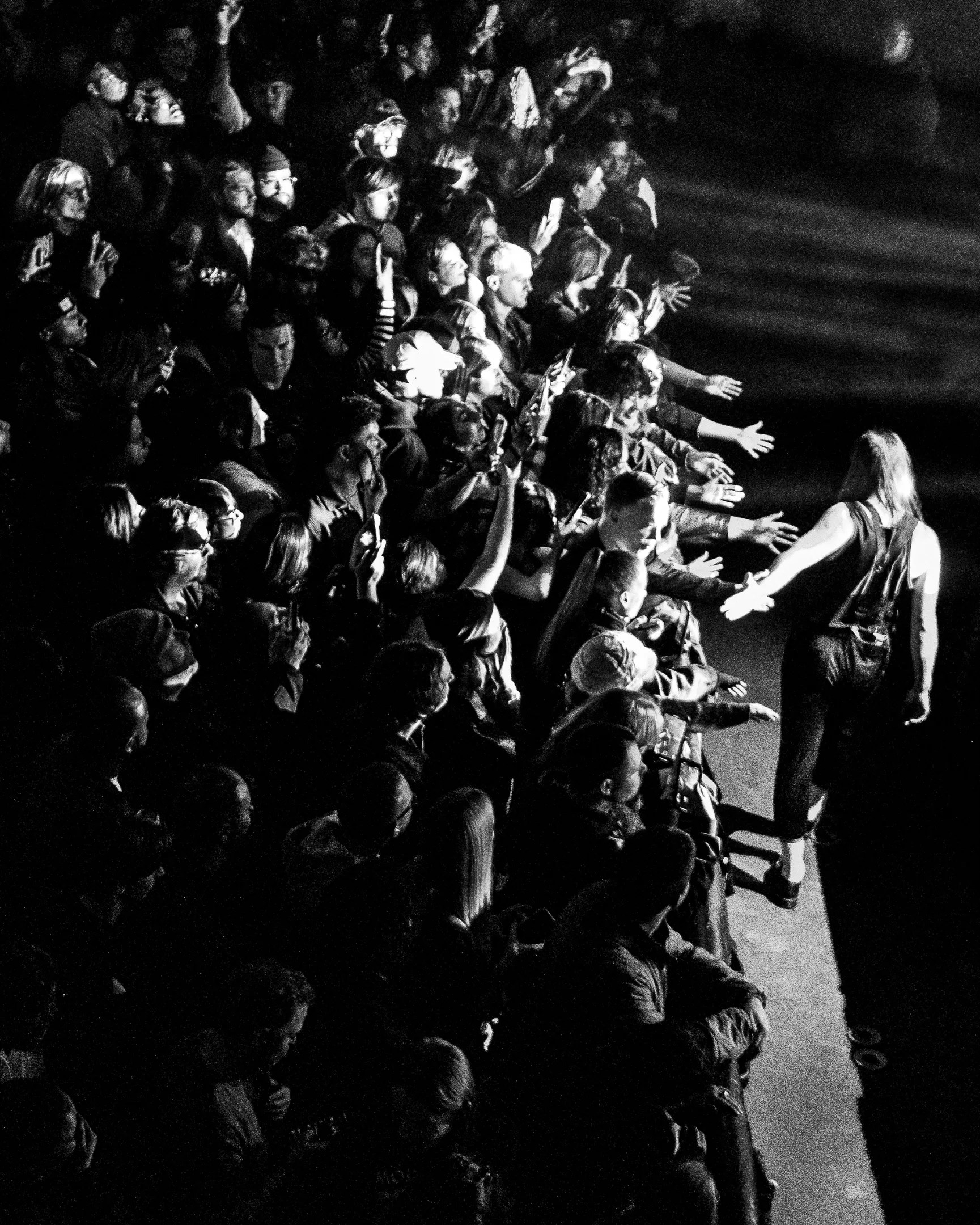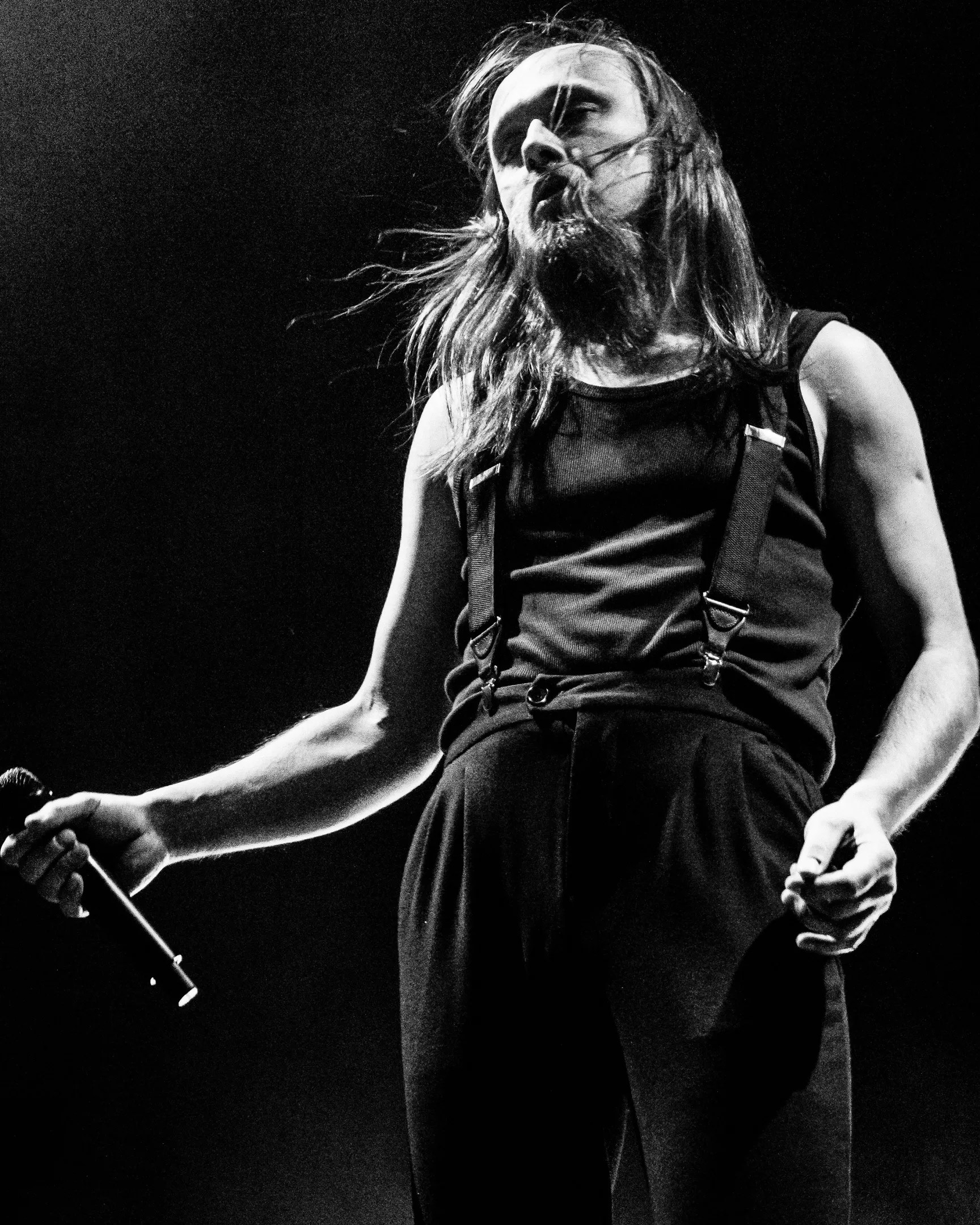 Right from the first synth key hit, a massive wave of fans began clamoring to get as close to the Belarusian band as possible. Lead singer Egor Shkutko danced through the fog and strobing lights as if trying to weave between the beams. His bandmates, guitarist Roman Komogortsev and bassist Pavel Kozlov, danced and switched instruments between guitar/bass and synths/drum machines throughout their nearly two-hour set.