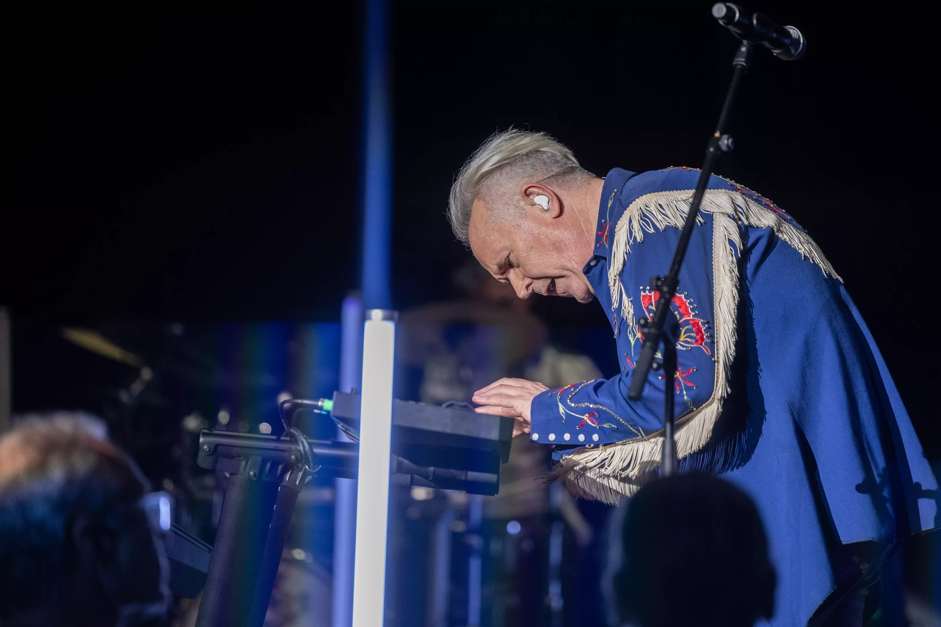 Jones is an engaging live artist. He may be turning 70 this month, but that didn’t keep him from roving all around the stage, switching from keytar to only vocals and to synth. For a set of intimate songs, he sat at a keyboard, encouraging fans to join in and sing. And the crowd was ready. On the second song of the set, “Like to Get to Know You Well,” the audience successfully brought the back-ups to Jones’ lead.