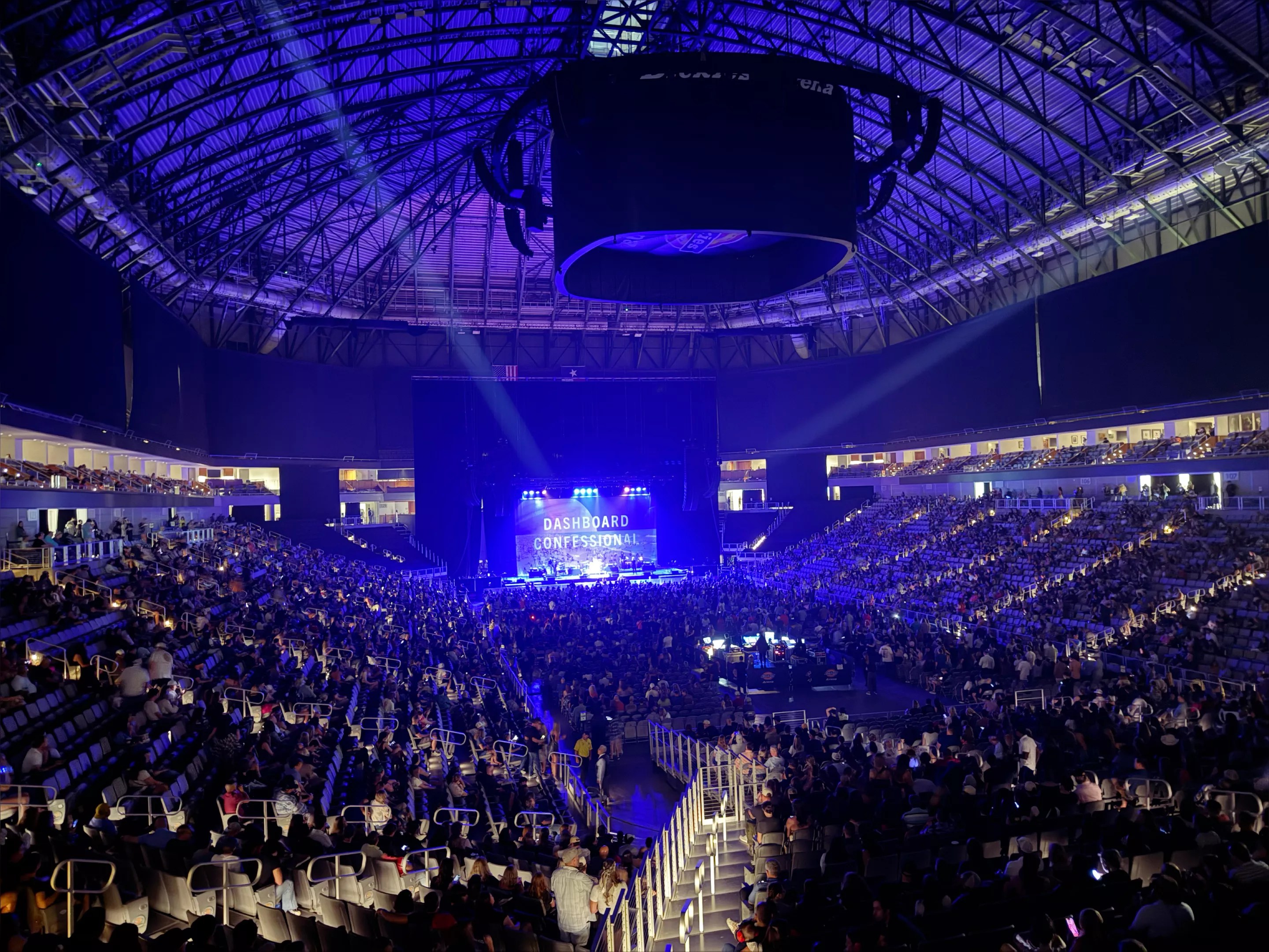 A packed Dickies Arena glows in blue as Dashboard Confessional takes the stage, delivering a night to remember.