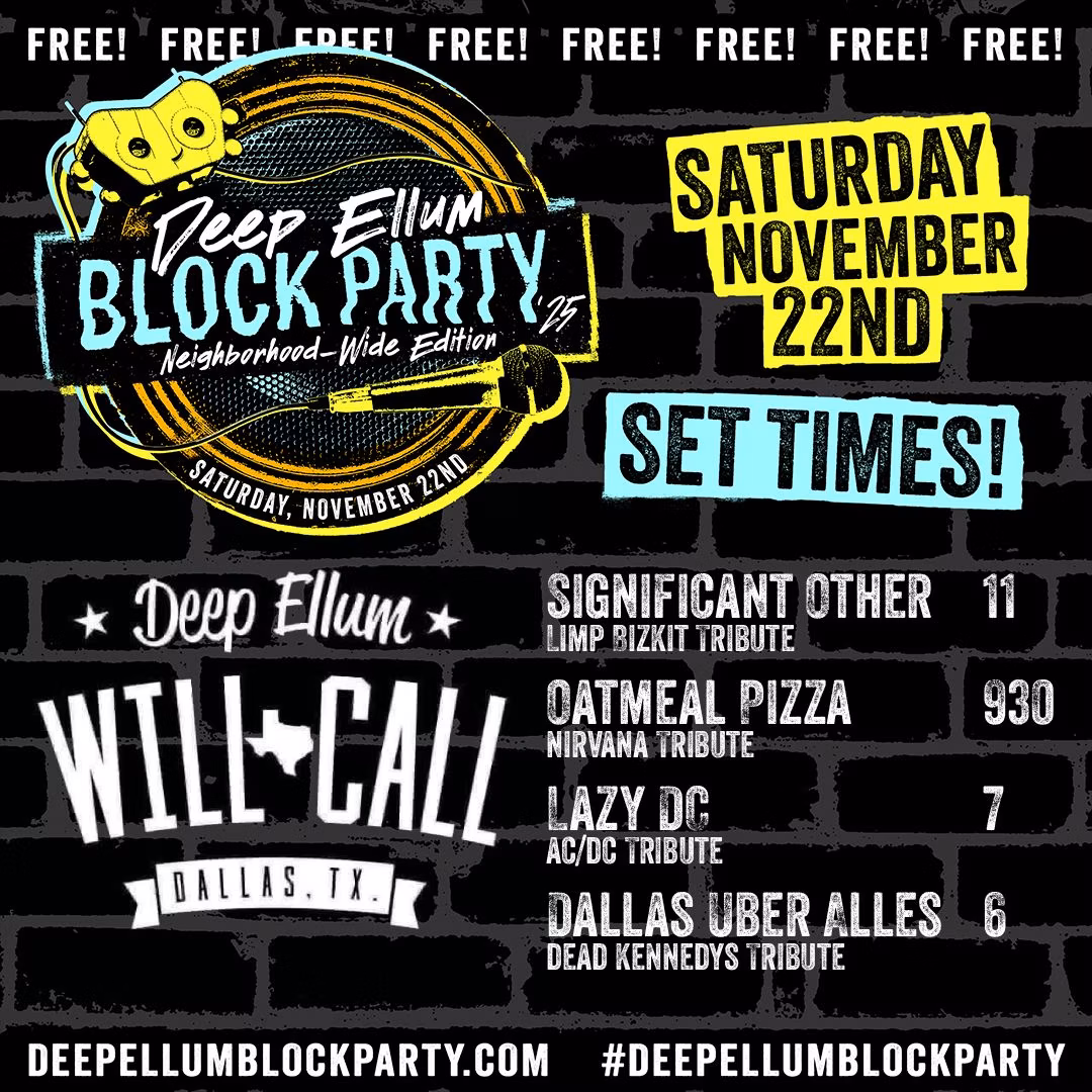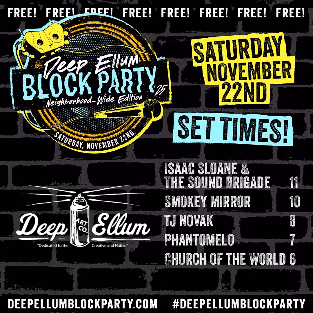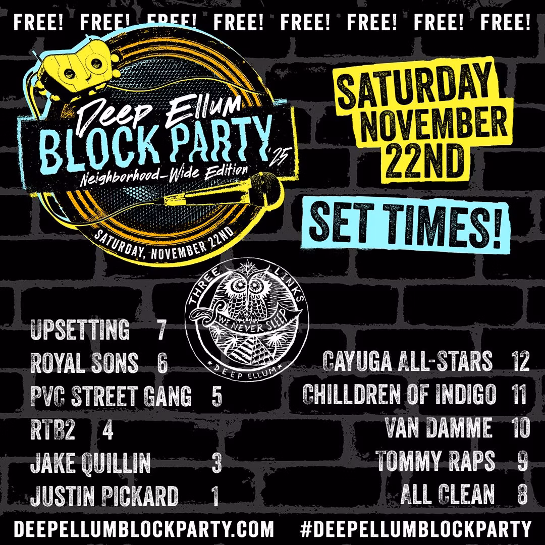 With the Deep Ellum Block Party commencing on the Saturday before Thanksgiving, the set times to see some of your favorite local artists have been announced.