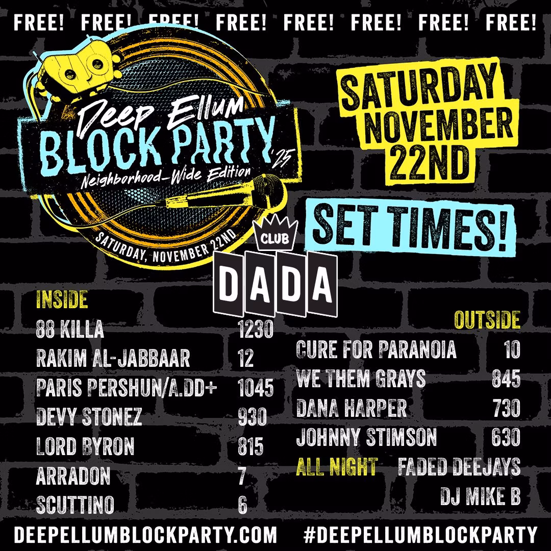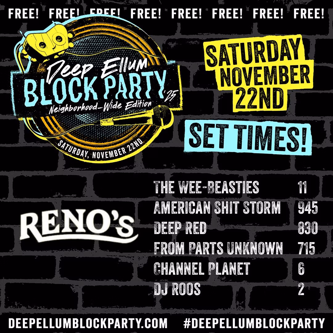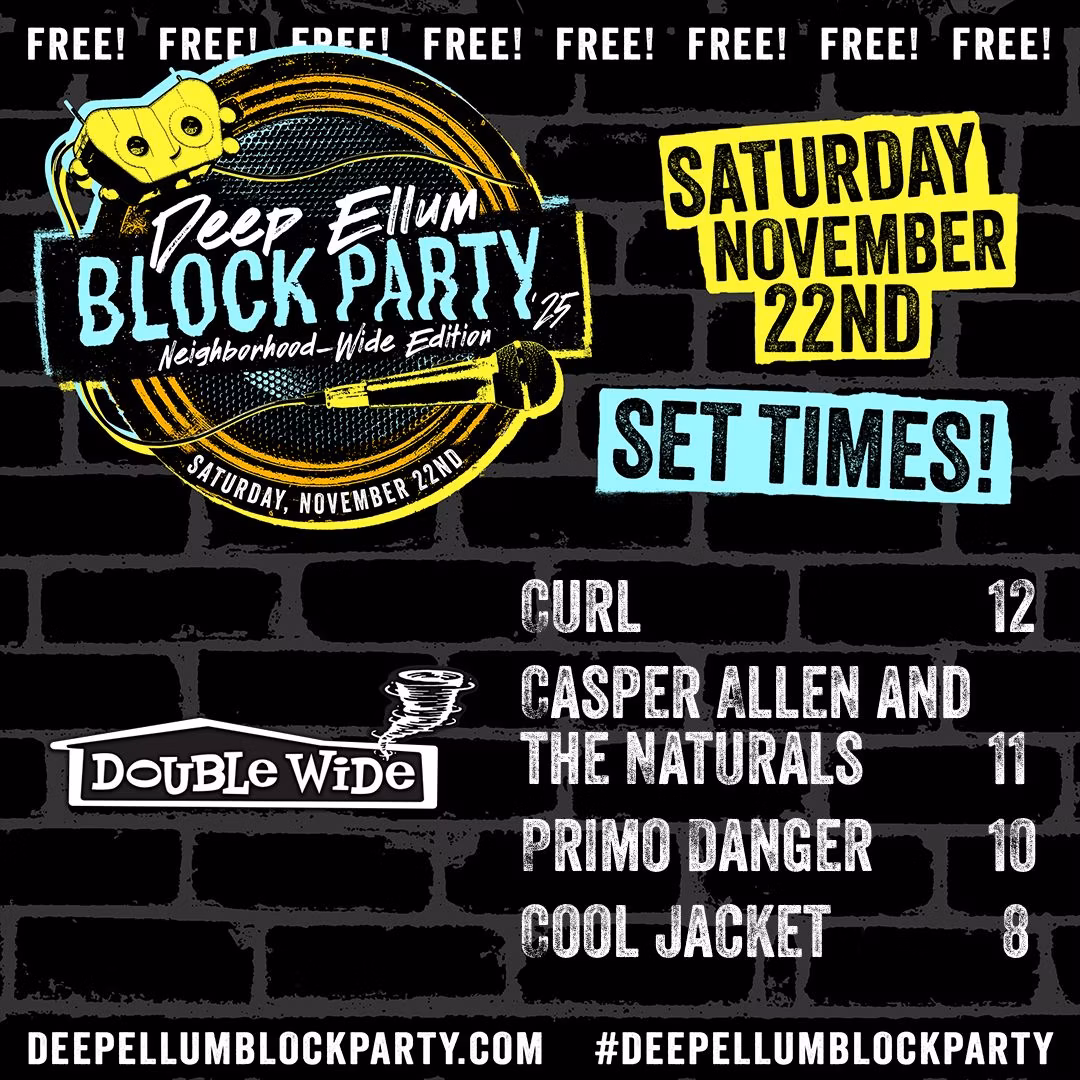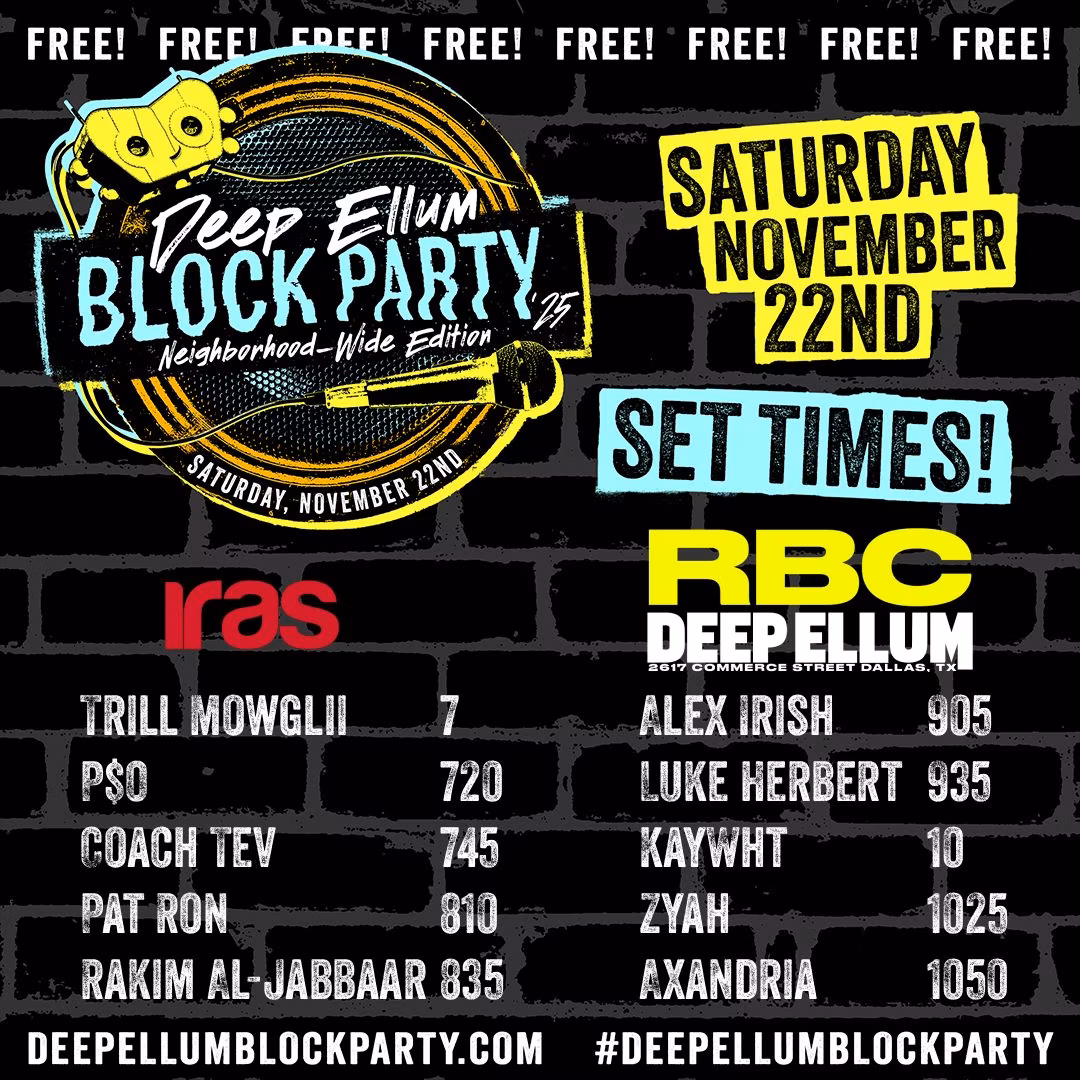 Below is a suggested guide. You can also download the flyer of set times from your preferred location. It’s all about celebrating everything Deep Ellum has to offer and what makes it special throughout the year.