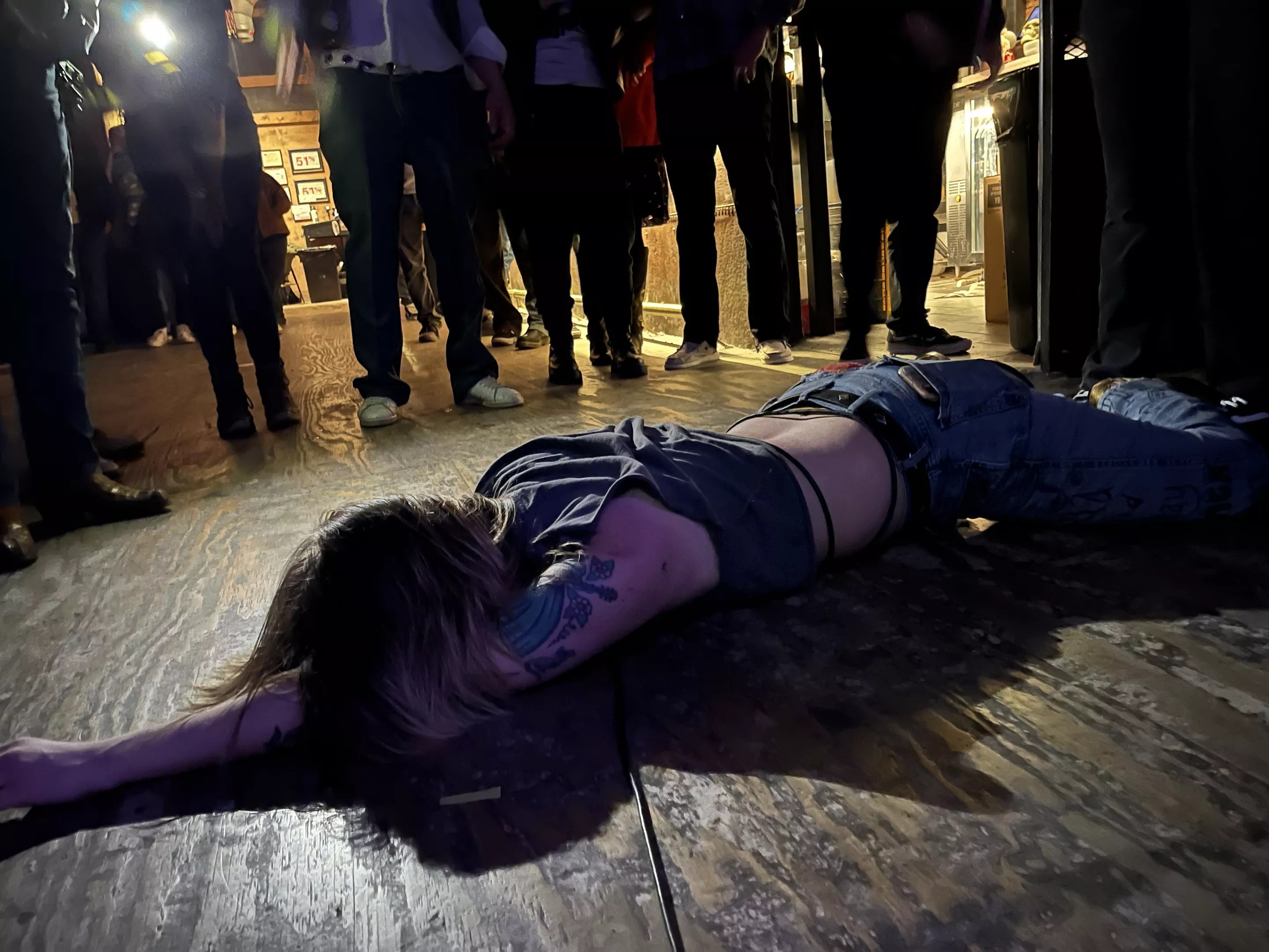 Bartender Erica Pipes dutifully cleared off the bar when she heard the opening sultry strains of “Forbidden Fruit” in preparation for a half-naked Brae, having stripped down to his boxers and socks, to crawl across the counter-top, crooning the refrain, “Never going back,” into the mic.