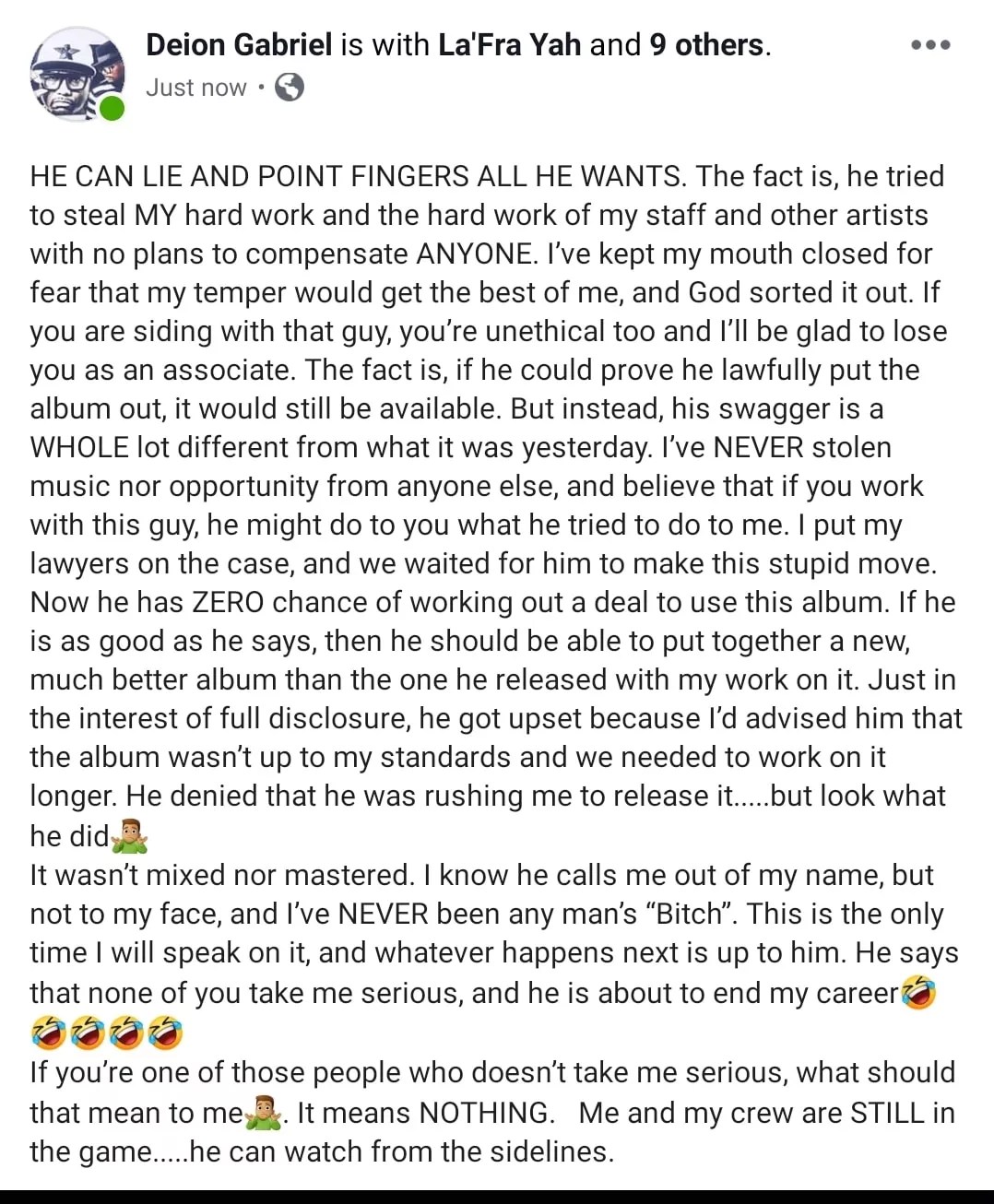 “Clay was wanting to rush music out. The whole staff and every other artist said his album wasn’t ready.” — Deion Gabriel