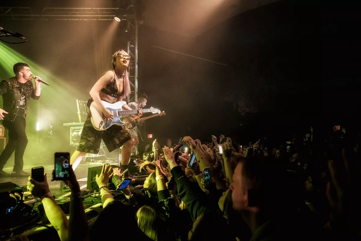 The music is fine. Each song is more or less indistinguishable from the next, as well as everything else on pop radio right now, whether it’s Chainsmokers, Bruno Mars or Maroon 5. But it’s Jonas who drives the young women and gay men to DNCE’s shows.