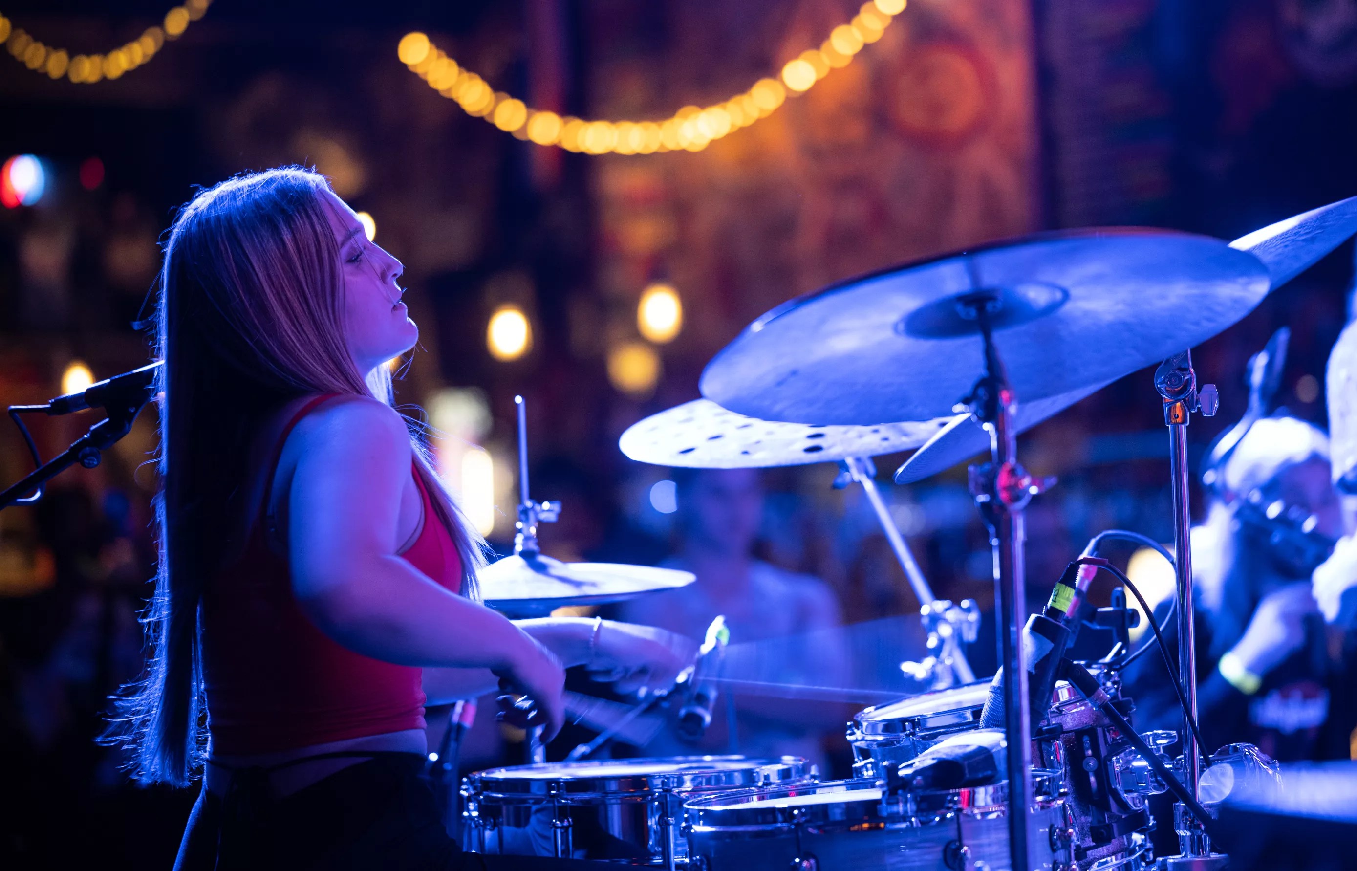 There is one woman on stage. Sitting at the drum kit is a petite, not-quite-21 blonde named Payton Taylor. It’s her name on the marquee as well, as in the Payton Taylor Project. It may be her project and her band, but you might never know unless you listened. Taylor lets every member shine.