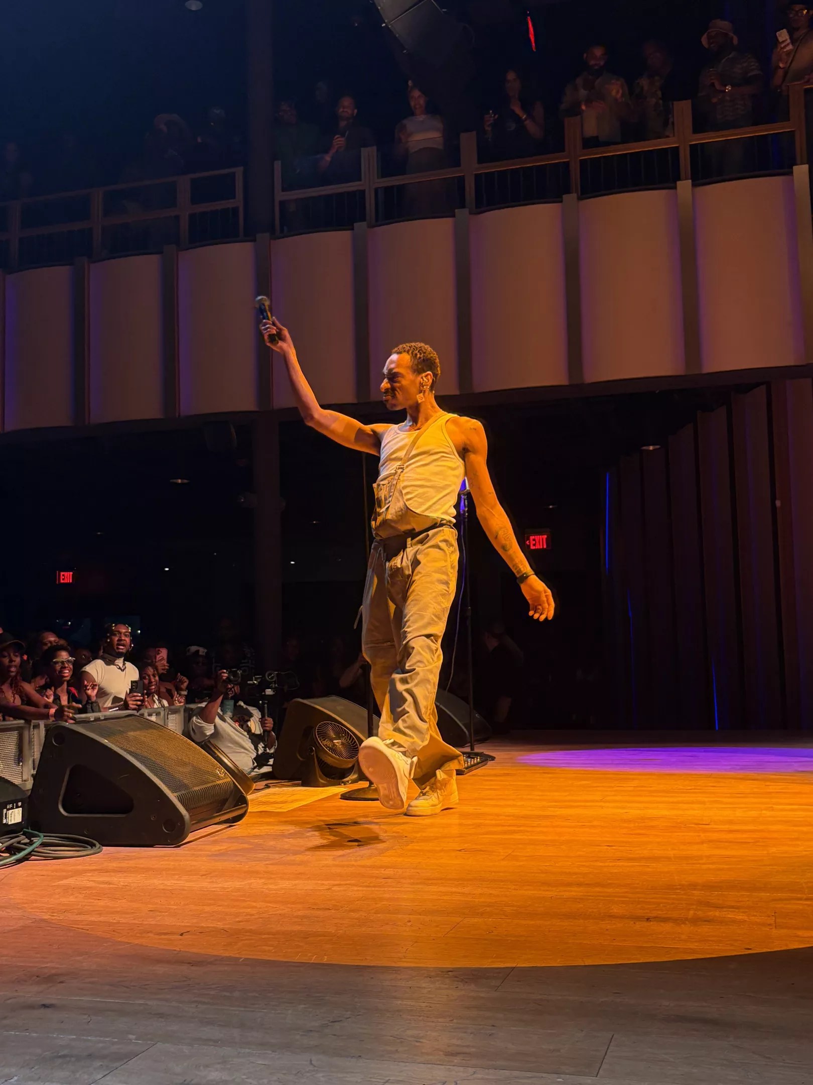 The mere sight of Bernarr’s name on the stage’s background screen after his opener concluded their set sent the crowd into a frenzy. A video montage of his life began on the screen displaying Bernarr’s evolution from a microphone-holding infant with his parents holding him to a piano-playing toddler. Next were images of his childhood church choir days that led into his teenage YouTube days. The YouTube videos with him singing Kanye West’s “Flashing Lights” and cameos of pre-Dreamville songstress Ari Lennox brought on additional screams and notes from the crowd stating, “That’s who I remember.”