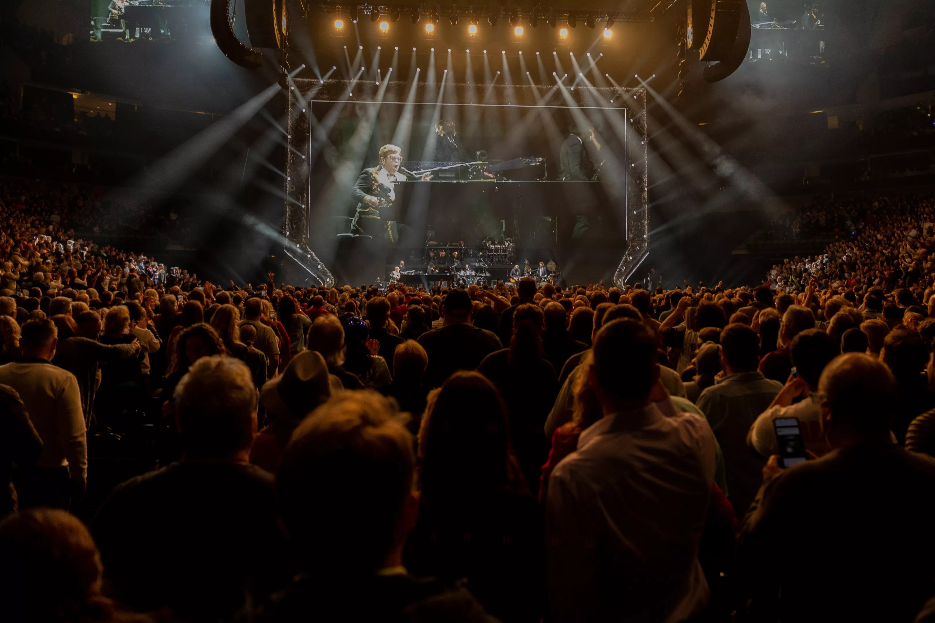 The arena was packed. Hundreds of fans of all ages donned their very best Elton John chic – some in sequins, some in bedazzled jumpsuits and others in light-up sunglasses that could be seen from the floor when the lights went dark.