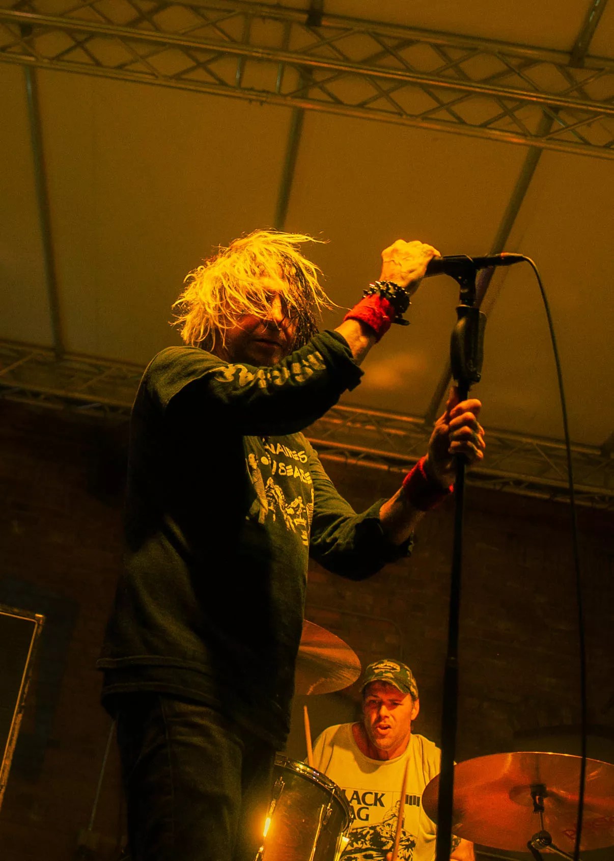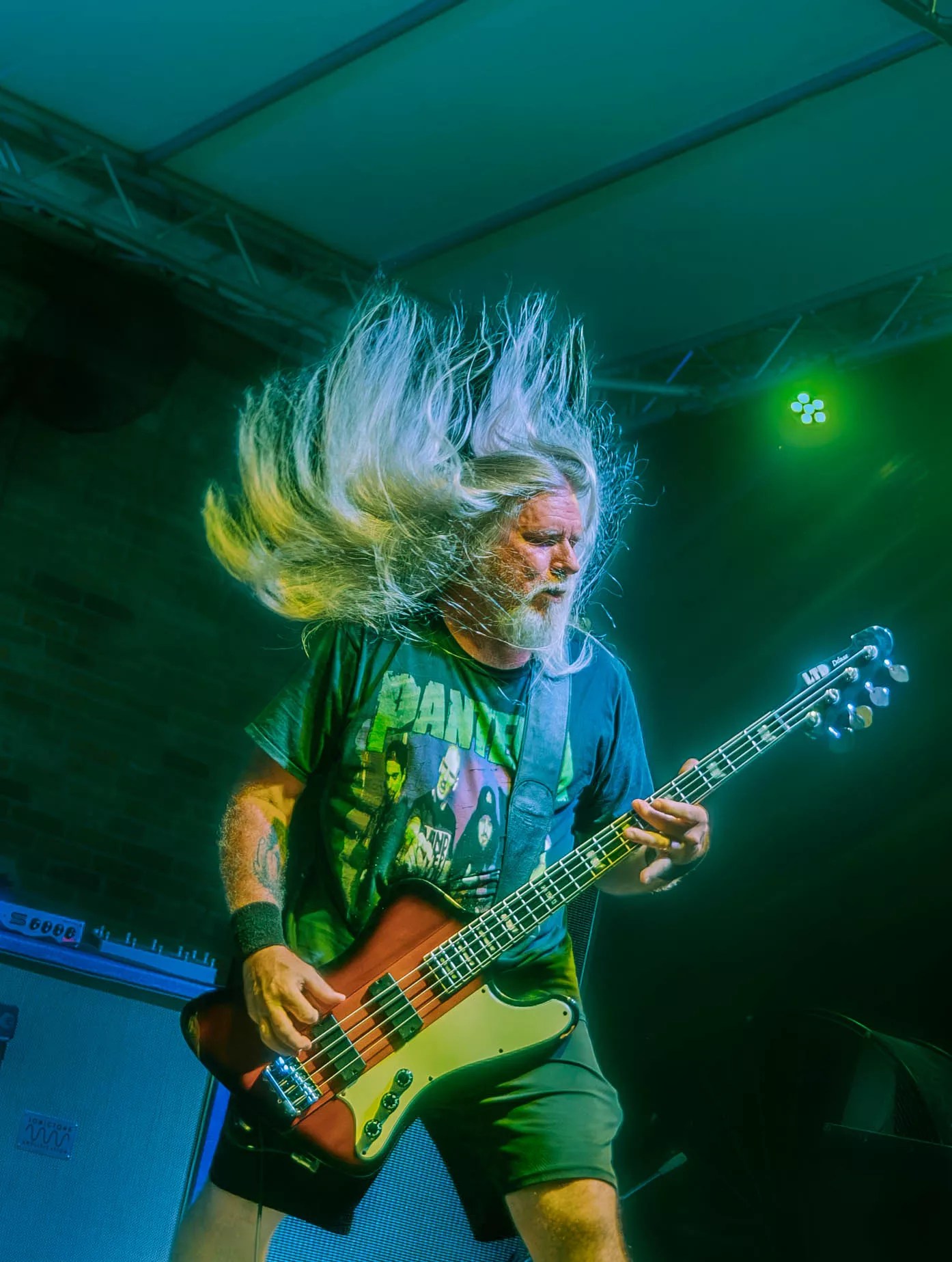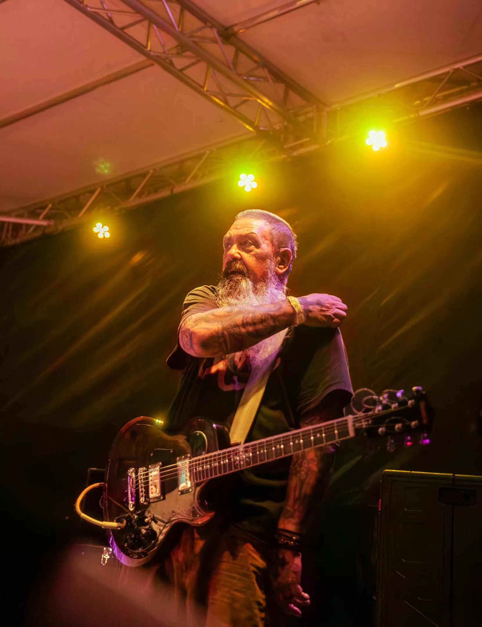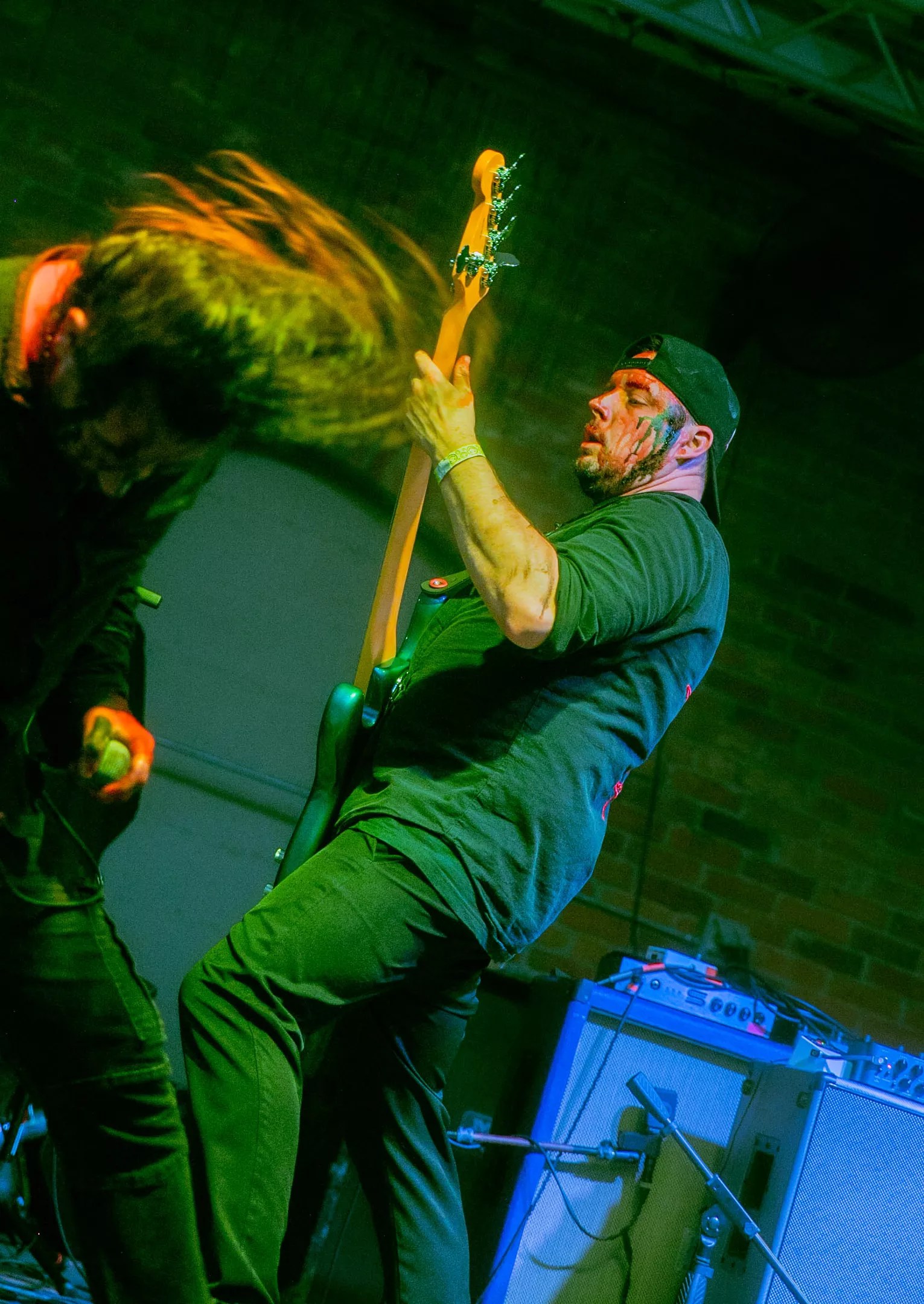 Guitarist Jimmy Bower performs for a sweaty crowd with Eyehategod.