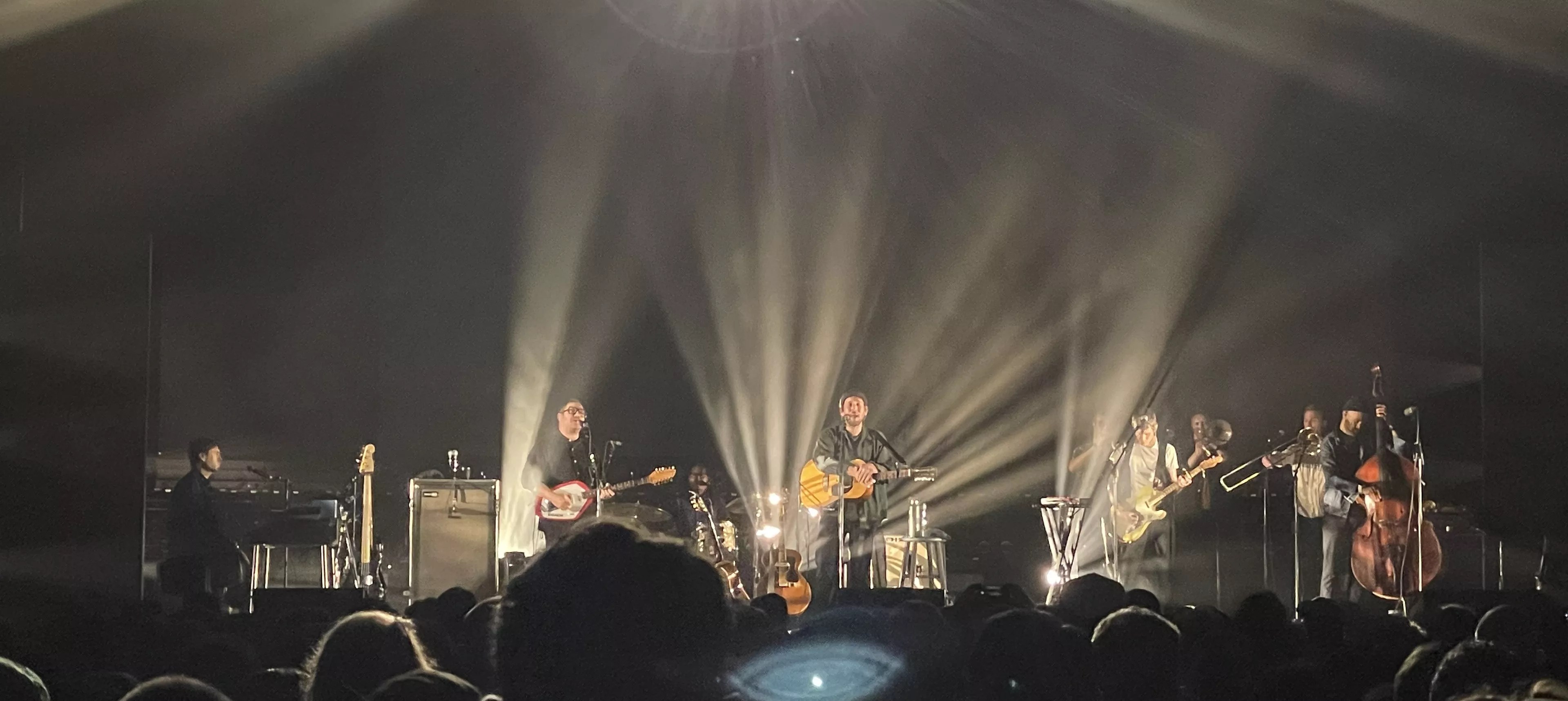 The 36-year-old Pecknold, joined by frequent collaborators Skyler Skjelset, Casey Wescott, Christian Wargo and Morgan Henderson, as well as drummer Christopher Icasiano and (as Pecknold described them) “three-fourths of the Westerlies” – Riley Mulherkar, Chloe Rowlands and Willem de Koch – providing support on brass, was visibly pleased to be back in front of an audience: “Thank you so much for being here,” he said, before a single note was played. “We’re on our first tour in four years; it’s been fun so far.”