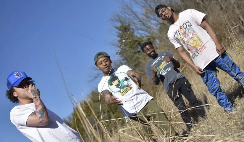 First is Udon, who sports a curled, handlebar mustache and speaks with an eerie, eloquent tone. Then there’s Steez Ronin, the leader in the room, wild and outgoing – onstage and off. Tyler, “Blockparty,” is the most silent character, serious and hardcore – the last one to call himself an artist. Next is Durty Redd, the realist in the group and a smooth-talking baritone. Prince Ace is the lone wolf and poet. Hood Spaghetti is the natural trendsetter with an avant-garde style and sense of humor that’s uncomfortable but somehow fitting. Last is J4 Mane, known for his antics. Each show, you can find J4 in some sort of strange getup.