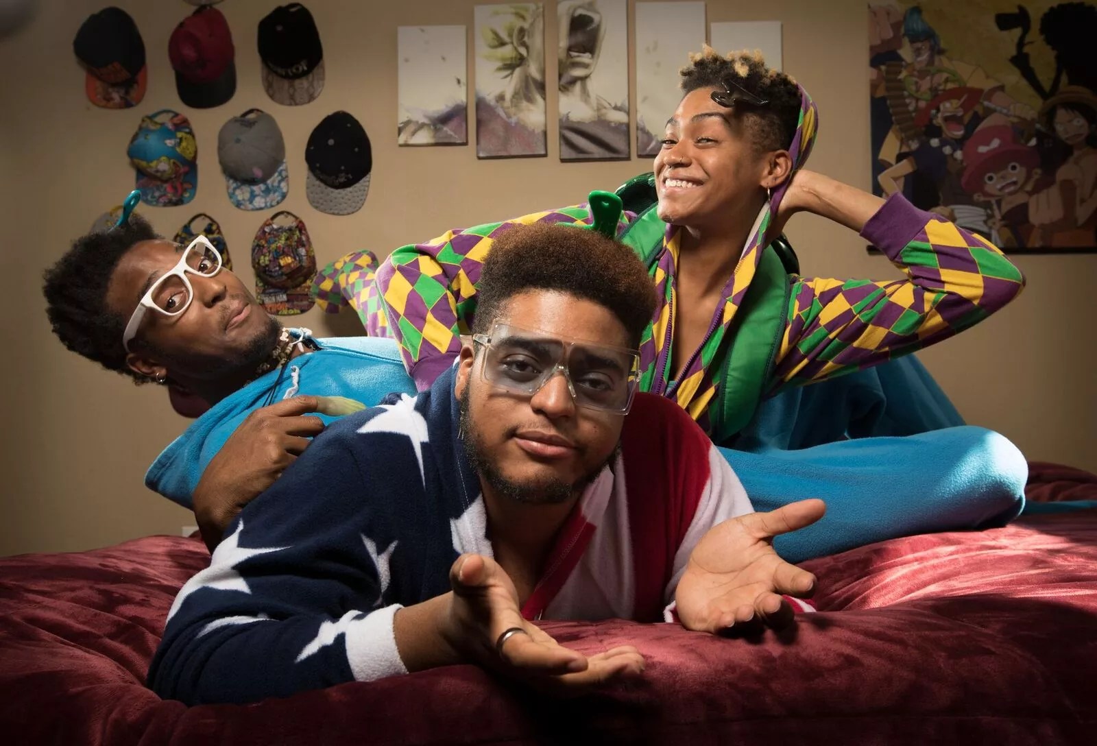 The trio sits in their onesie pajamas eating giant burritos in bed, with munchies no doubt brought on by the aromatic smoke they’re partaking in while sitting in Kwinton’s bed in his family’s home in Plano. They may be on a break between photo shoots, but the image is hardly staged. The Grays own several pairs of colorful onesies, and together they’re in a perpetual musical comedy, giddy and unjaded by (showbiz) life, like the Von Trapps in simpler times.