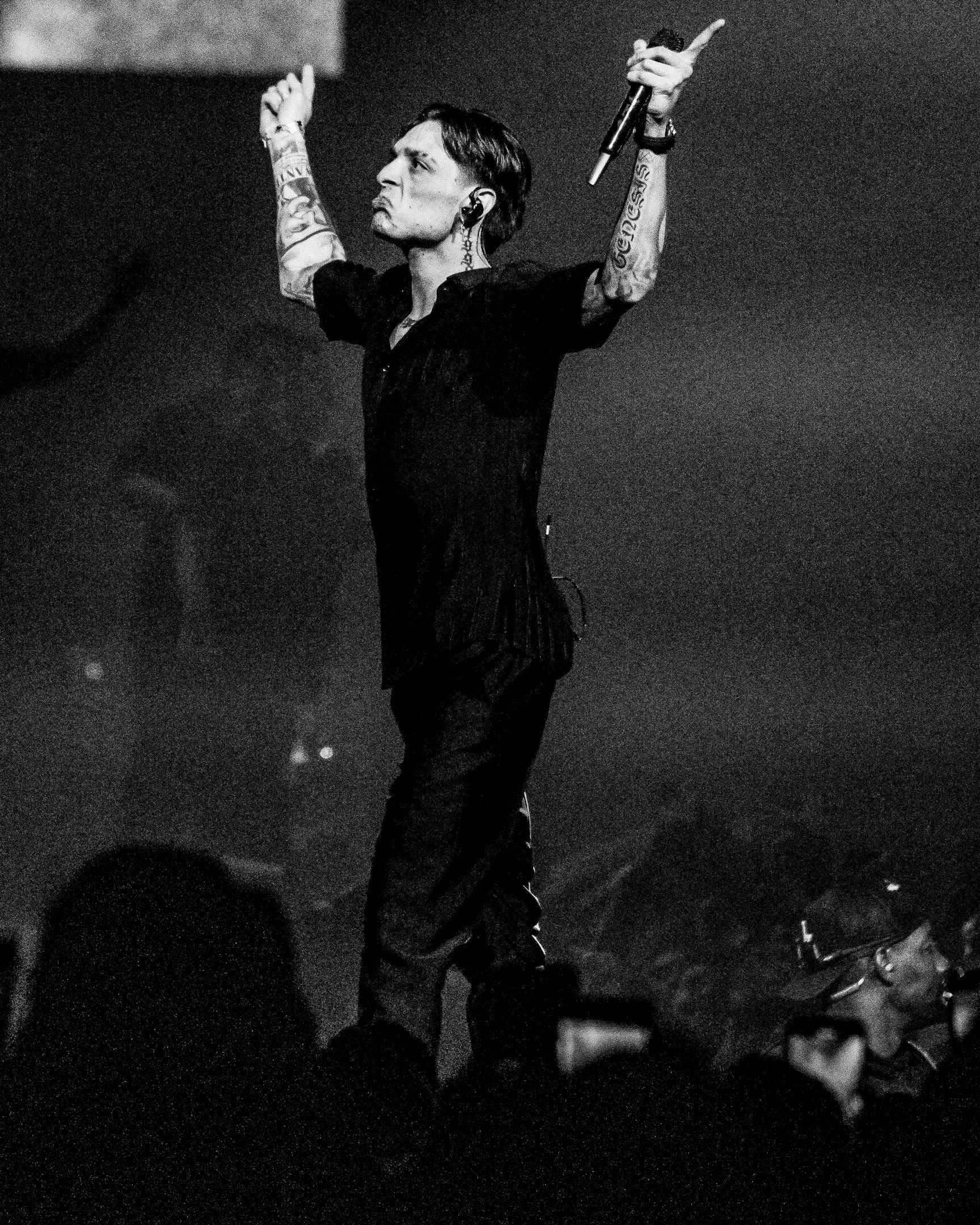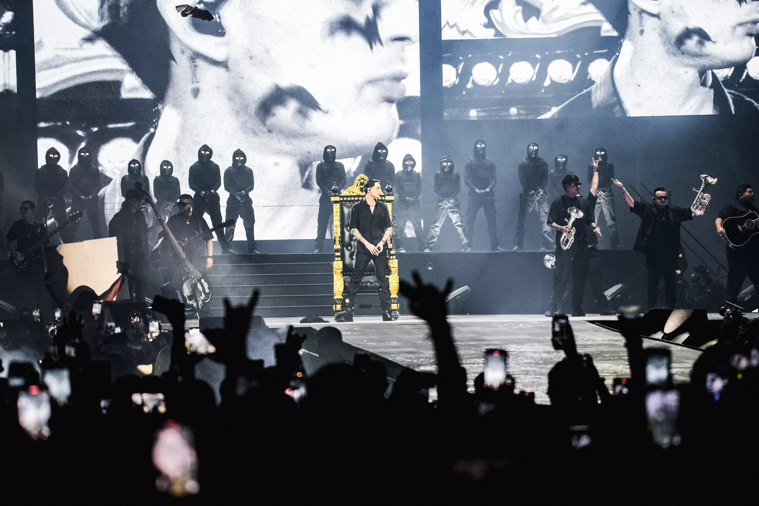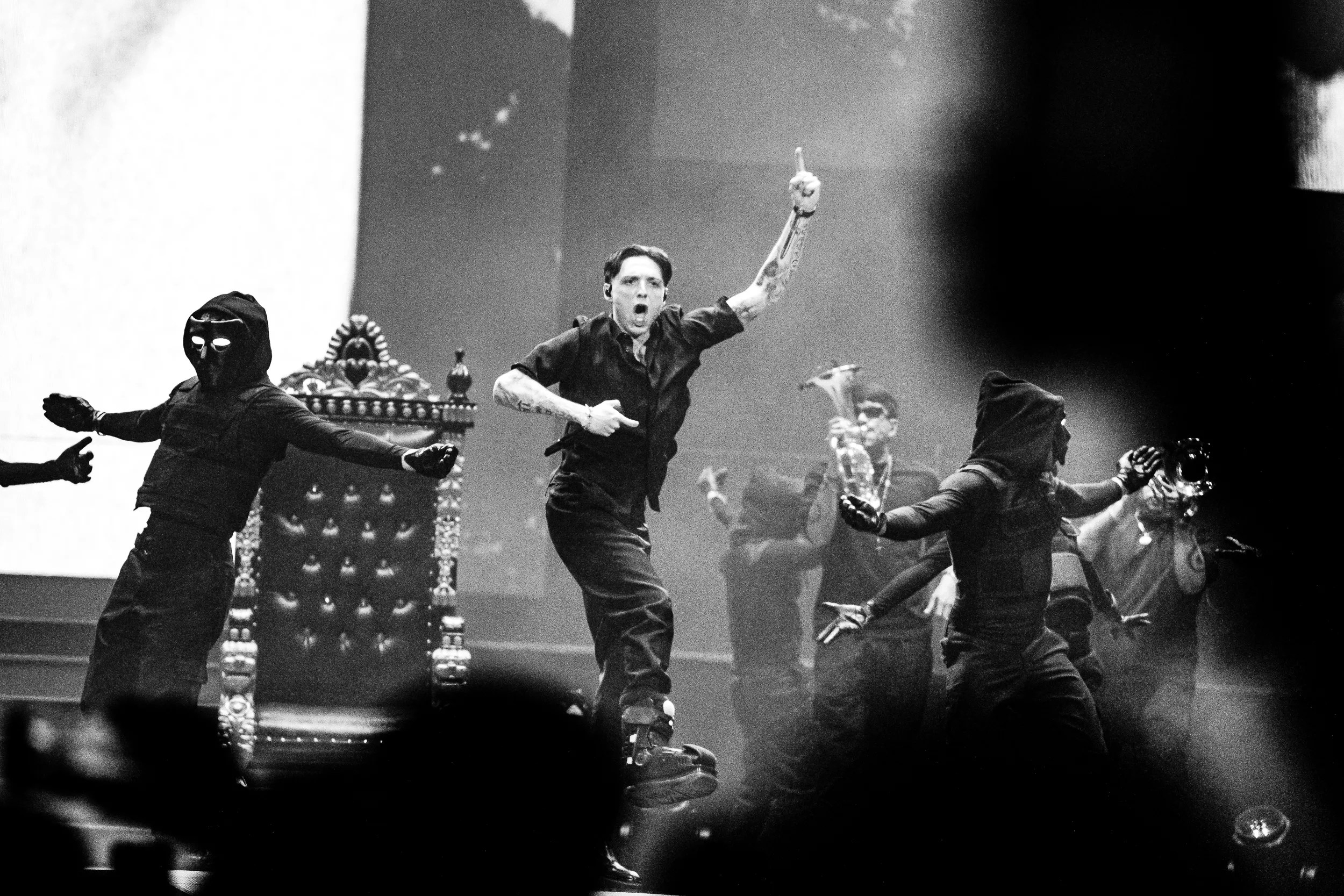 Hot off the release of his fourth studio album, Éxodo, Peso felt like royalty on Sunday. He began the show with “La Patrulla” from the latest album, while sitting on a black and gold throne. This lavish intro set the stage for a night of theatrics – a show divided into four acts and a grand finale. Much of the first act featured some of his global hits, including “AMG” and “Siempre Pendientes.” He closed the act smiling at the audience, letting them know they were in for a hell of a show.
