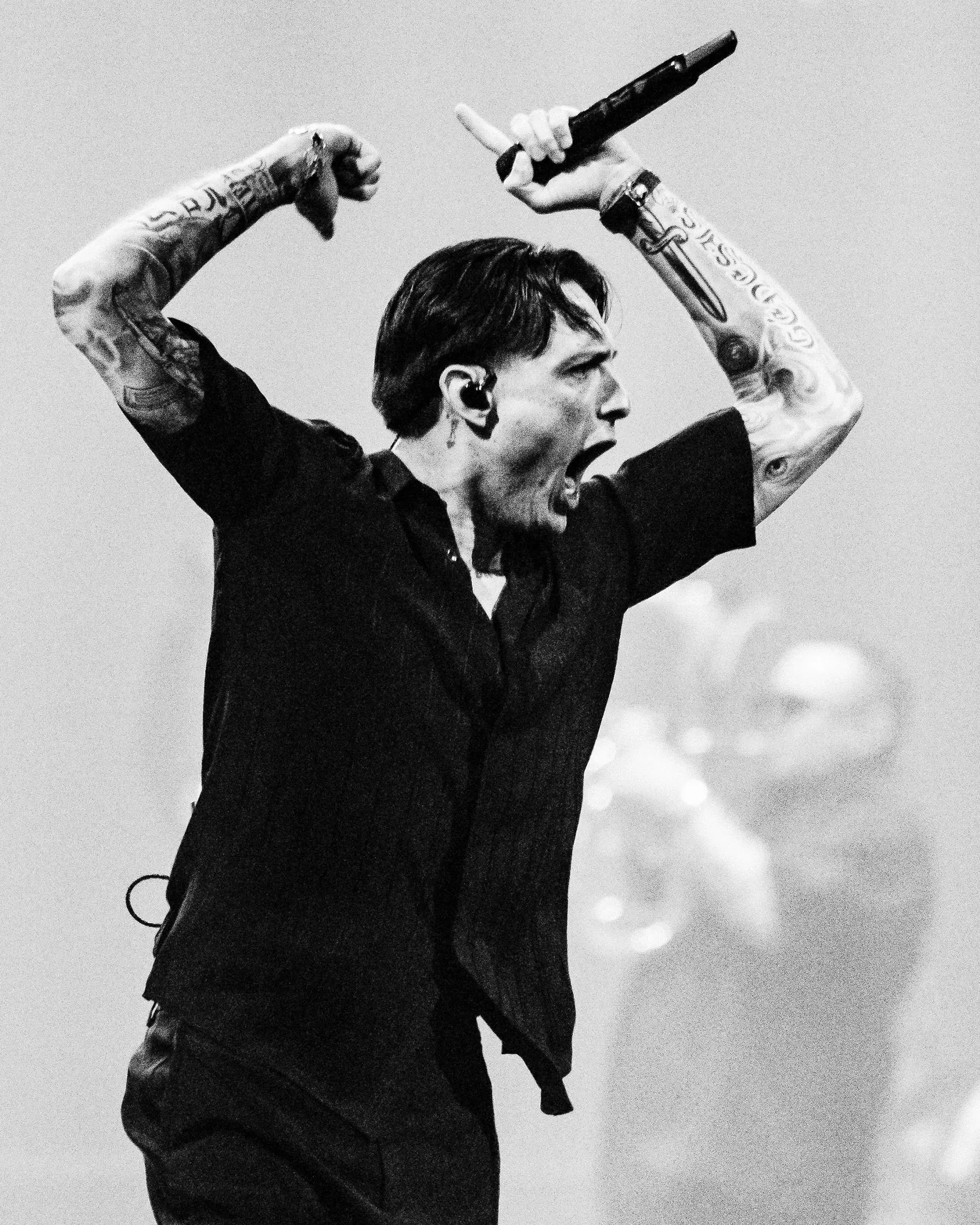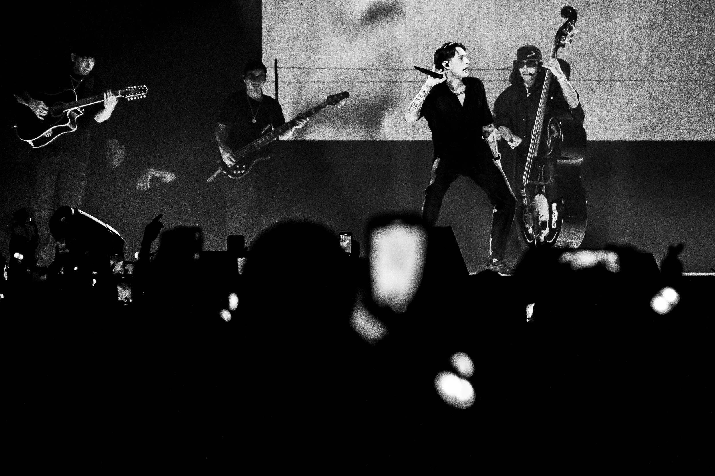 In Act 2, Peso performed some of his sadder, downtempo tracks, “Por Las Noches” – one of his signature solo songs, detailing the one-sided nature of a relationship – and “Bye” – an emotional, deep-cutting breakup ballad. Toward the end, the act took an upbeat turn, closing with “Ella Baila Sola,” a viral collaboration with Eslabon Armado, which has proven to be Peso’s biggest hit. Before switching things up, he gave a kiss to the audience through the big screen.