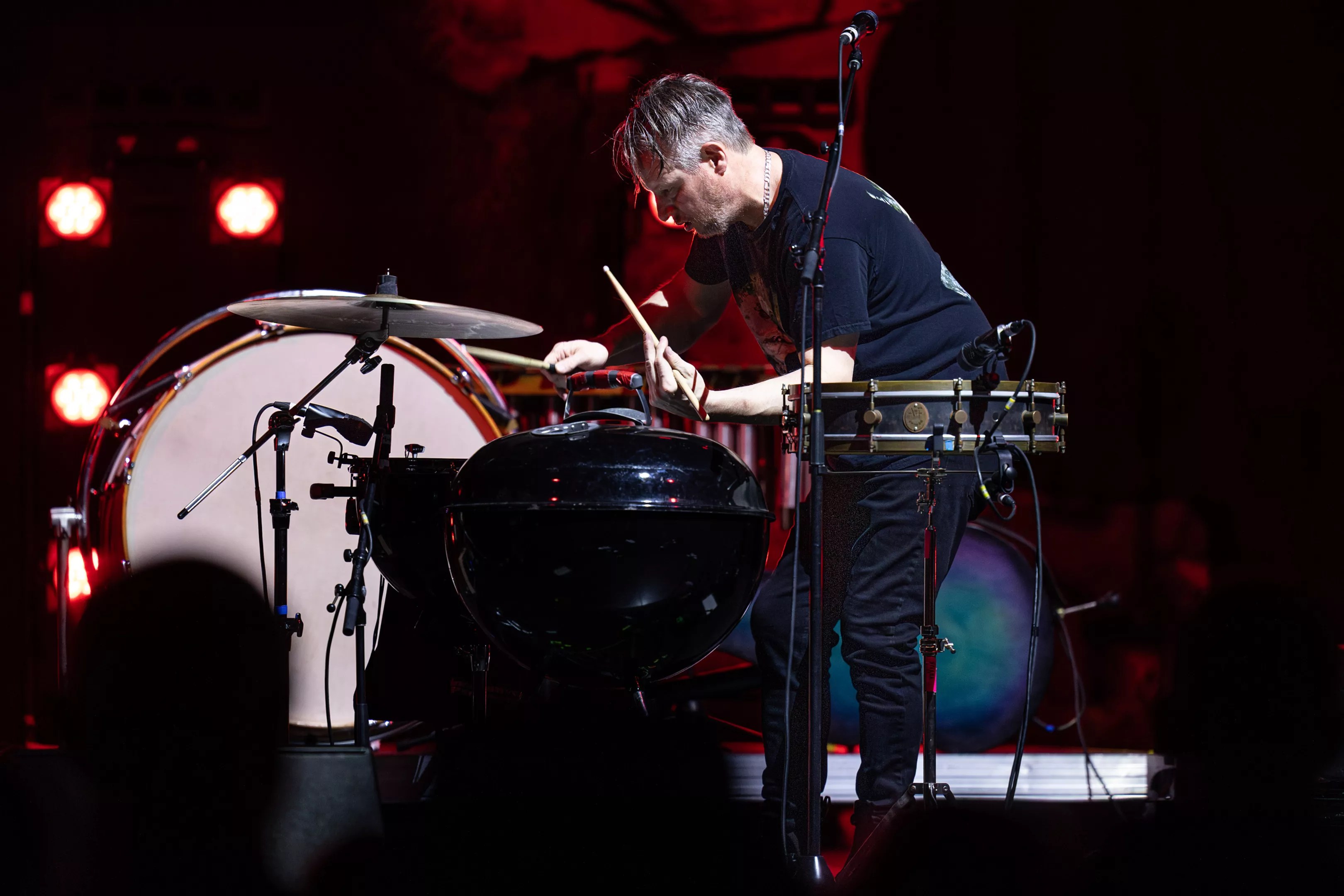 They were busking on stage Saturday night. Fans were dancing in the pit instead of moshing. The first half of the show was a religious-themed instrumental fiasco with saxophones and trumpets and Sparrow’s drum solo on a barbecue grill.
