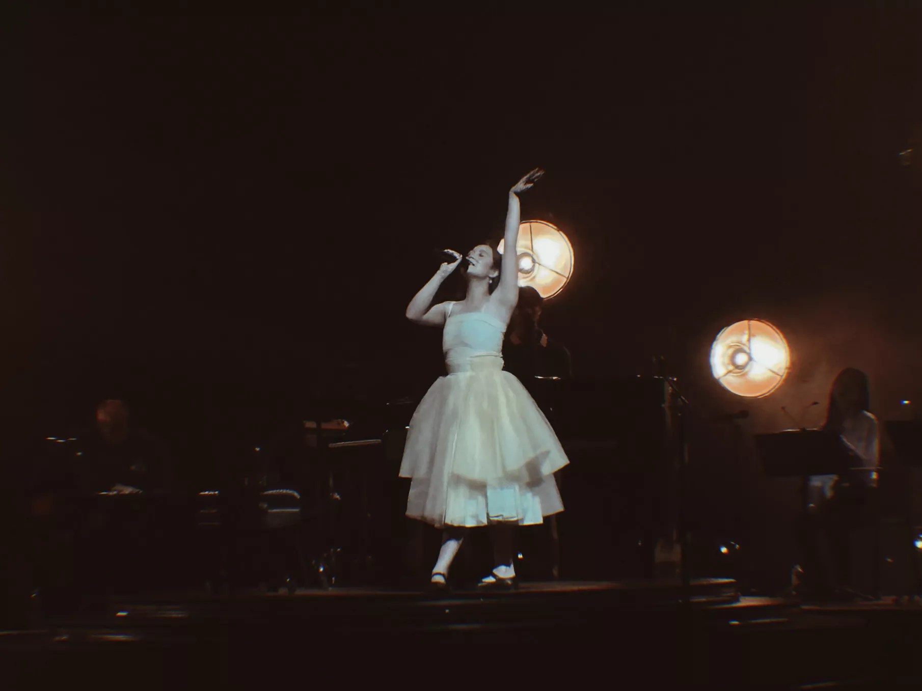 Just as her music harkens back to another era in pop culture, her stage looked like the set of an Old Hollywood musical with its backdrop of twinkling stars and a glowing platform for her piano. She wore a champagne taffeta dress that flowed and lifted beautifully when she danced in it.