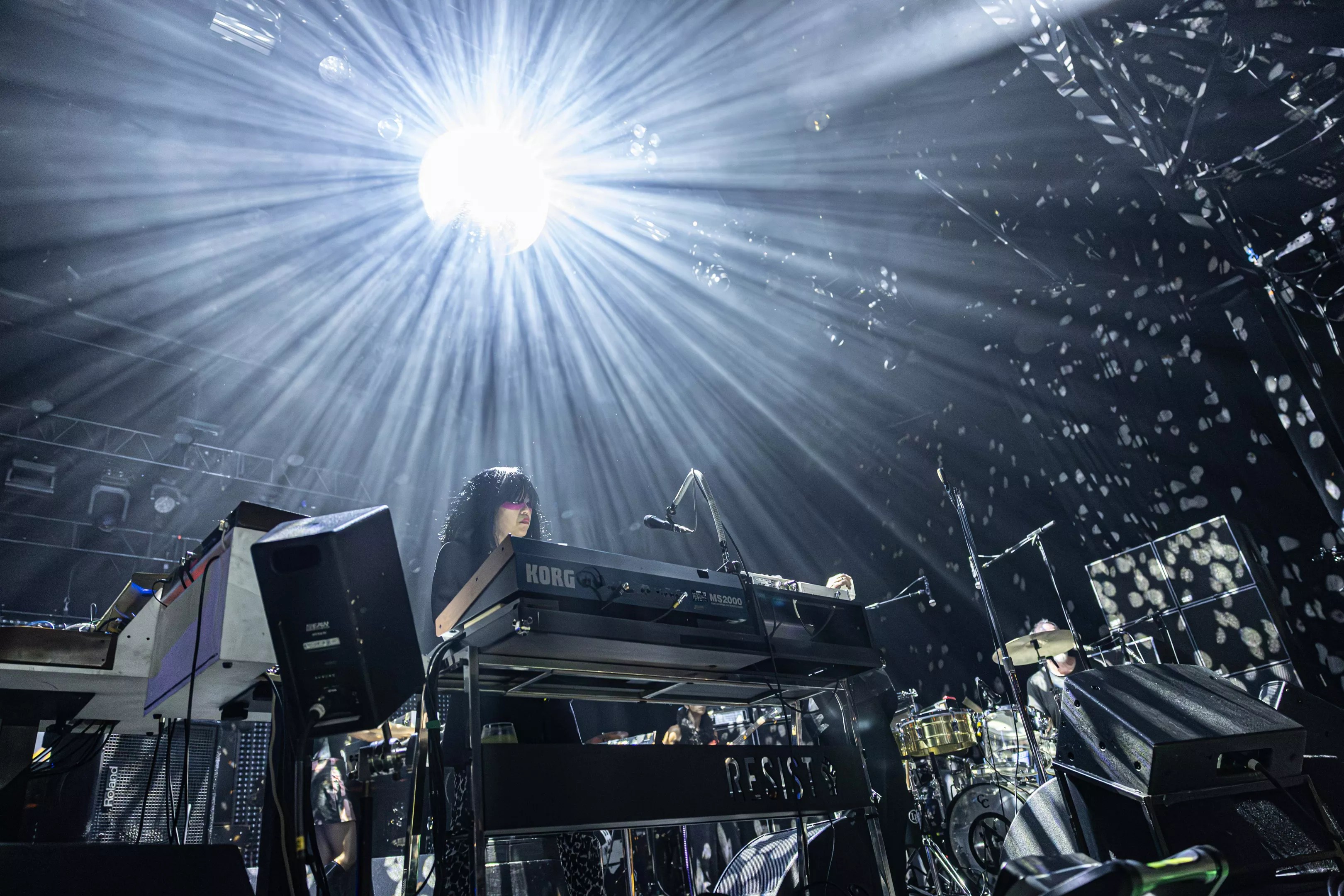 The first notes to “Us v Them” were accentuated by backlit spotlights shining on the band member playing their instrument, one by one, until James Murphy appeared at center stage.