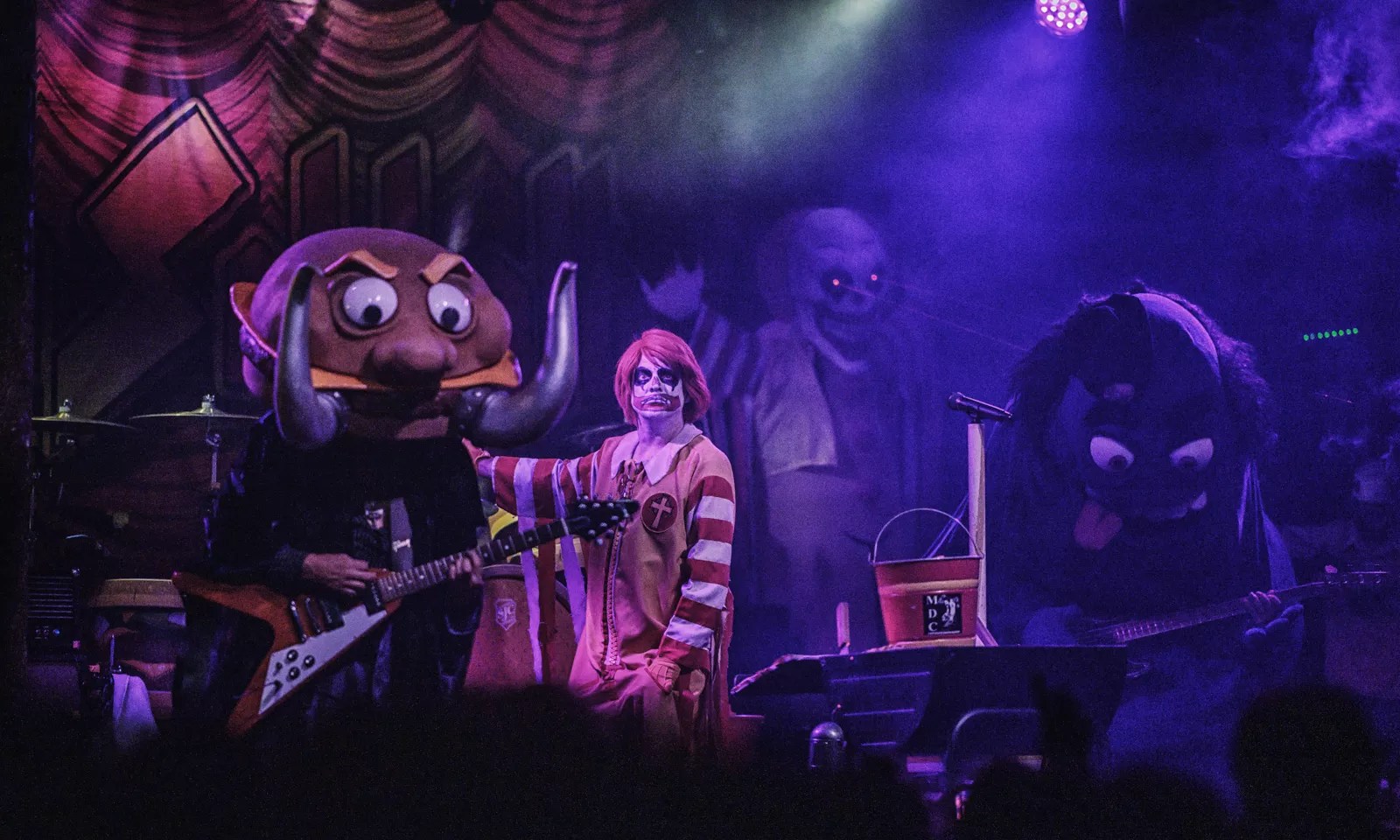 The night kicked off with Playboy Manbaby, the only band without an obvious gimmick. Next came Okilly Dokilly, a self-described “Nedal” band inspired by the words and fashion belonging to The Simpsons‘ adamant churchgoer Ned Flanders; followed by Mac Sabbath, known for bringing a wicked aesthetic approach to classic McDonald’s characters and replacing lyrics belonging to Black Sabbath.