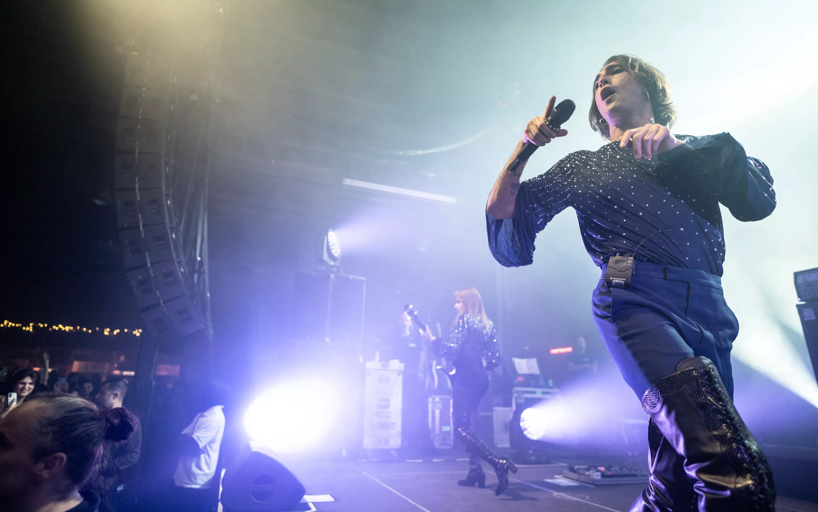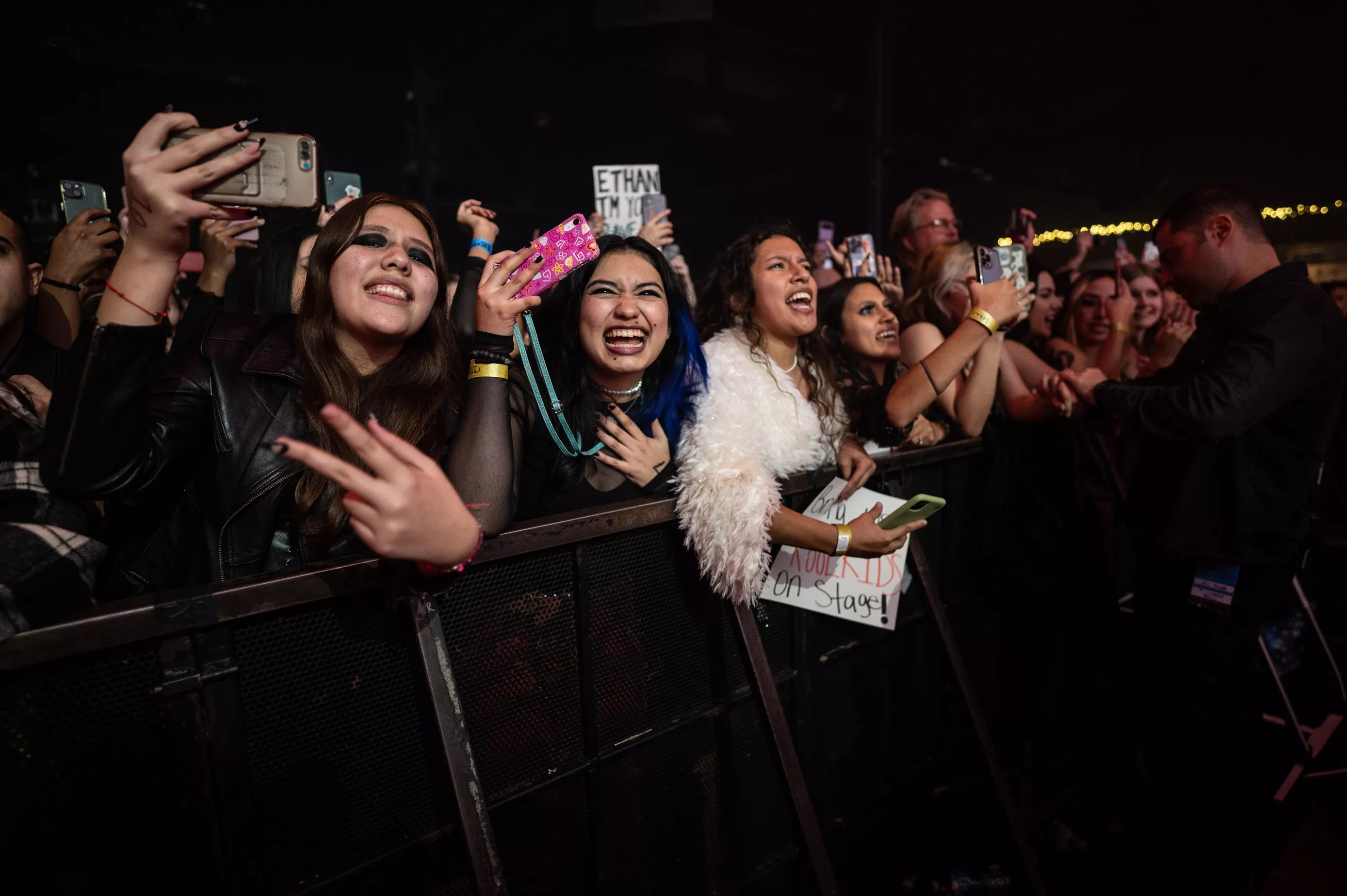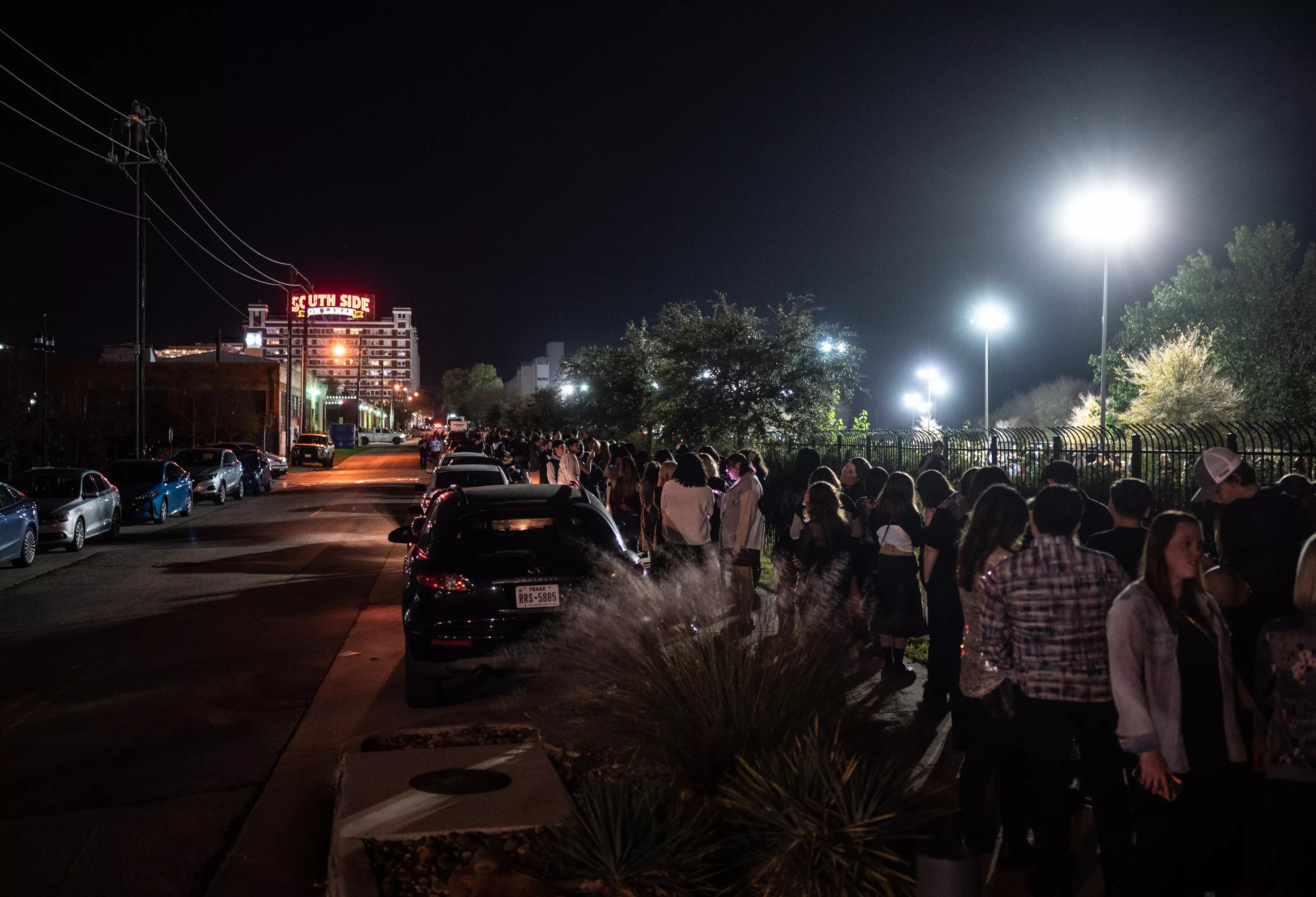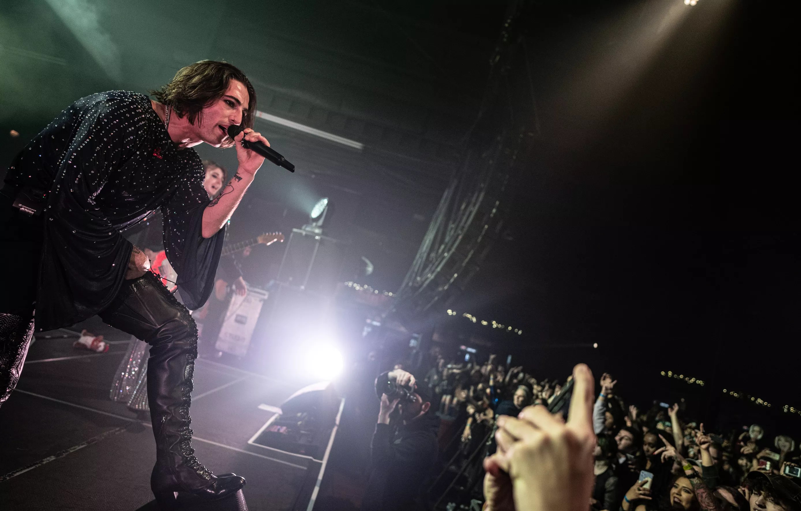 There was a line well before show time. It started outside the venue, went down the street and then folded back into the parking lot. People who got there an hour before doors opened found themselves several hundred yards away from the metal detectors. It gave me time to talk to a few of them. They were from Dallas, Austin, New Orleans, North Carolina and Oklahoma. This was their one chance to see Maneskin, and they were not going to pass it up. Almost universally, they all found out about the band by watching the competition show Eurovision Song Contest.