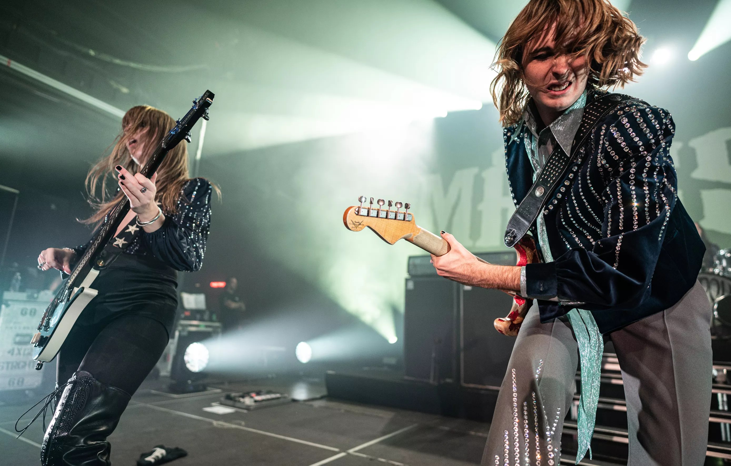 Guitarist Thomas Raggi and bassist Victoria De Angelis of Maneskin.