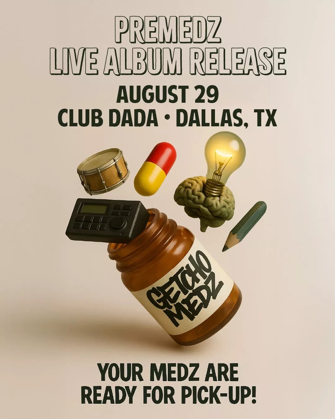 Concertgoers who come to the Medz show will walk away with a physical USB drive shaped like a pill containing Medz’s first dosage of your personal prescription, seven songs in an ongoing series, and the second being called PreMedz: Holistic. It won’t be available on streaming services, a move that goes back to the era of opening new CDs and remembering the smell of a fresh package. He wants fans to receive his music and have it mean something.