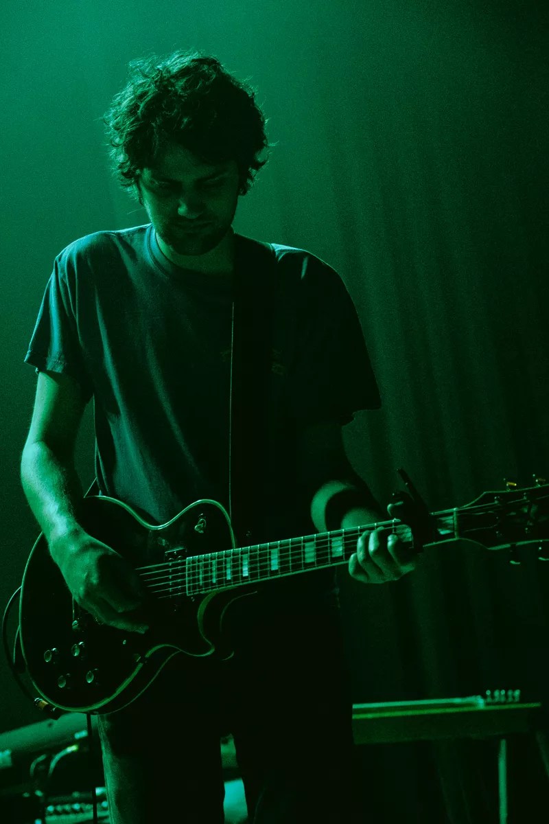 Lenderman’s guitarist plays atop the Tannahill’s Tavern stage.