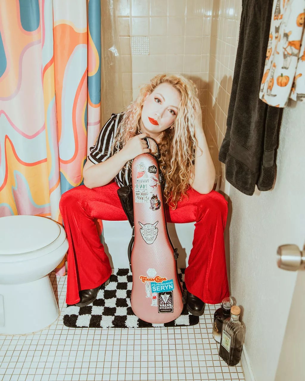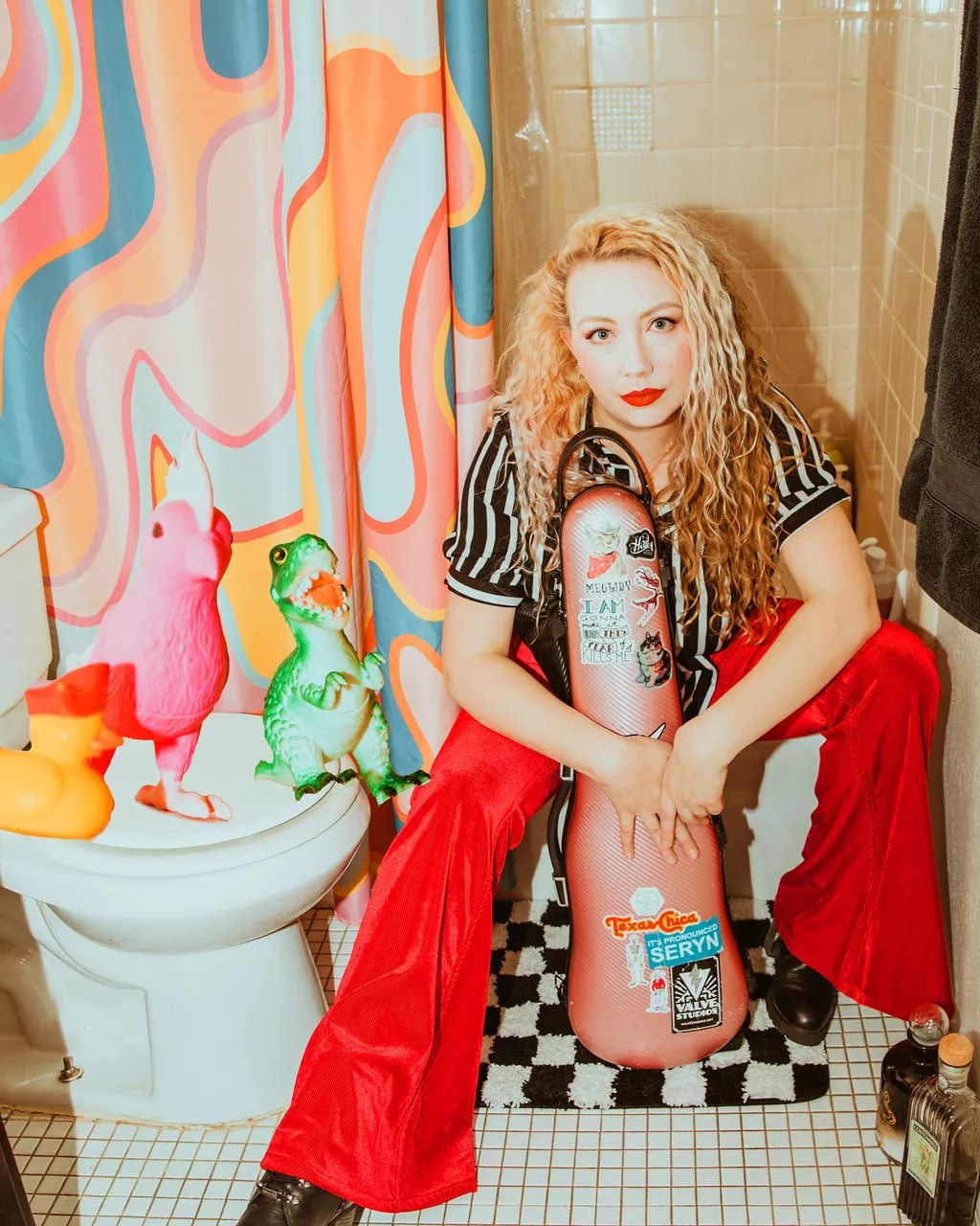 For Deering, bathrooms also serve as green room. ” … Spending a lot of time doing makeup, getting ready, and pregaming for gigs, dancing, listing to songs, learning the songs in the shower that I’m about to play onstage, making sure I know all the parts,” she says before breaking into a laugh. “Yeah, oh my God, I’ve never realized how much the bathroom has a role.”