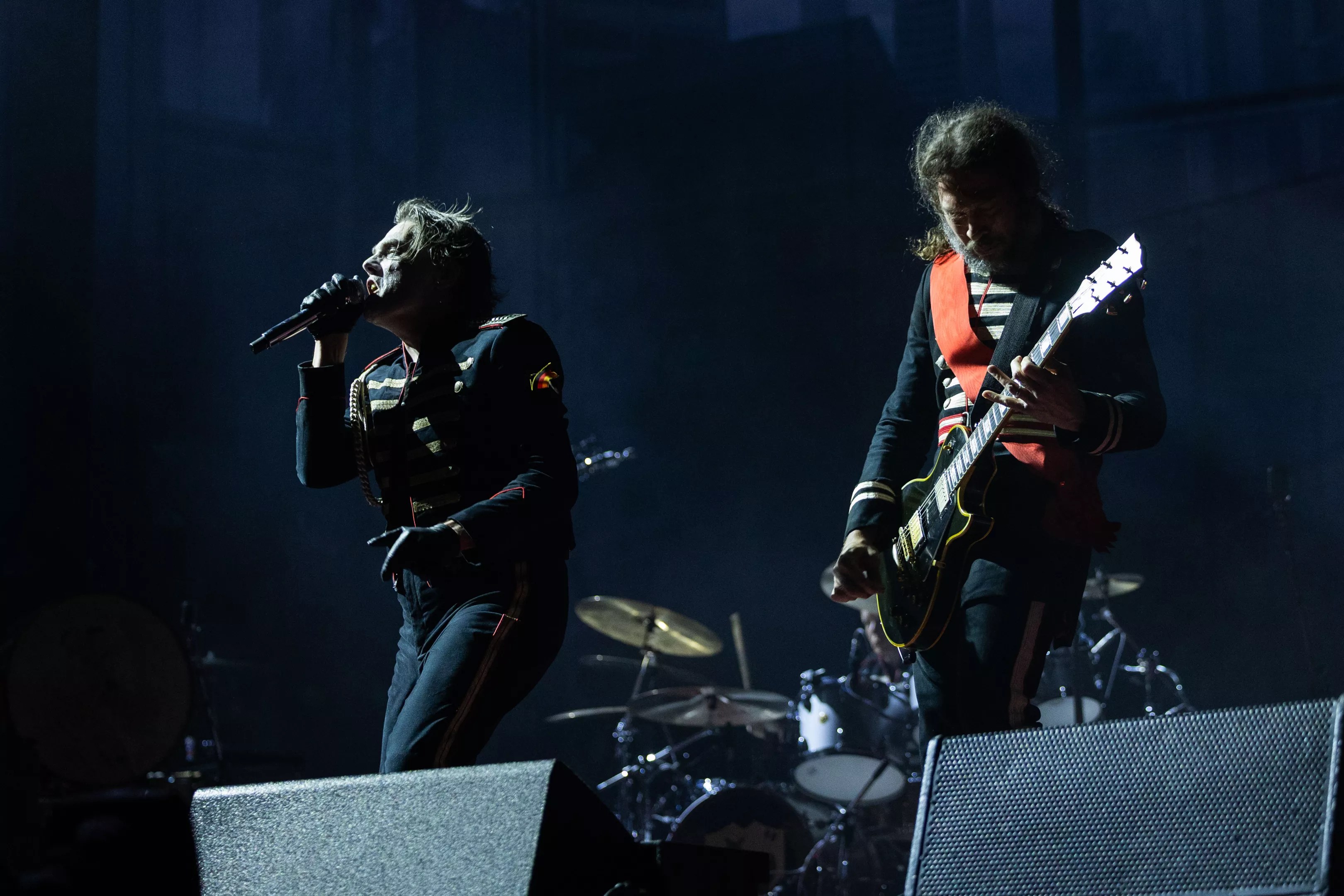 Way is a practiced showman and masterfully commanded the crowd, strutting about the stage in his military band uniform, his character playing like the demonic offspring of The Emcee from Cabaret and Heath Ledger’s Joker. At one point, the audience voted on whether four people who questioned “the vitality” of the Grand Immortal Dictator should be put to death. Red “yea” and black “nay” signs were available throughout the venue before the show, and the crowd held them high. “It’s a lot of fucking red!” cackled Way, before saying he could tell the vote was close and decided it was best to give the people what they want – ordering the criminals “executed” by firing squad on stage.