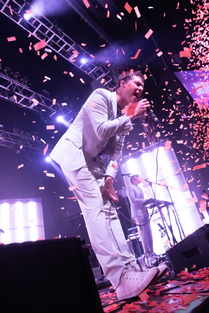 Rocking out to new and old songs from the group’s extensive discography spanning nearly 30 years felt like an intense reunion show. Kulash paused between a few songs, and the house lights brightened the audience for a question-and-answer session. One audience member inquired about the amount of confetti used for each show, and another asked what music Kulash had been listening to recently. The answers followed with Kulash estimating about 150 pounds of confetti bursting from above the stage for each show of the tour, and it seems Kulash is currently listening to lots of Prince’s Purple Rain.