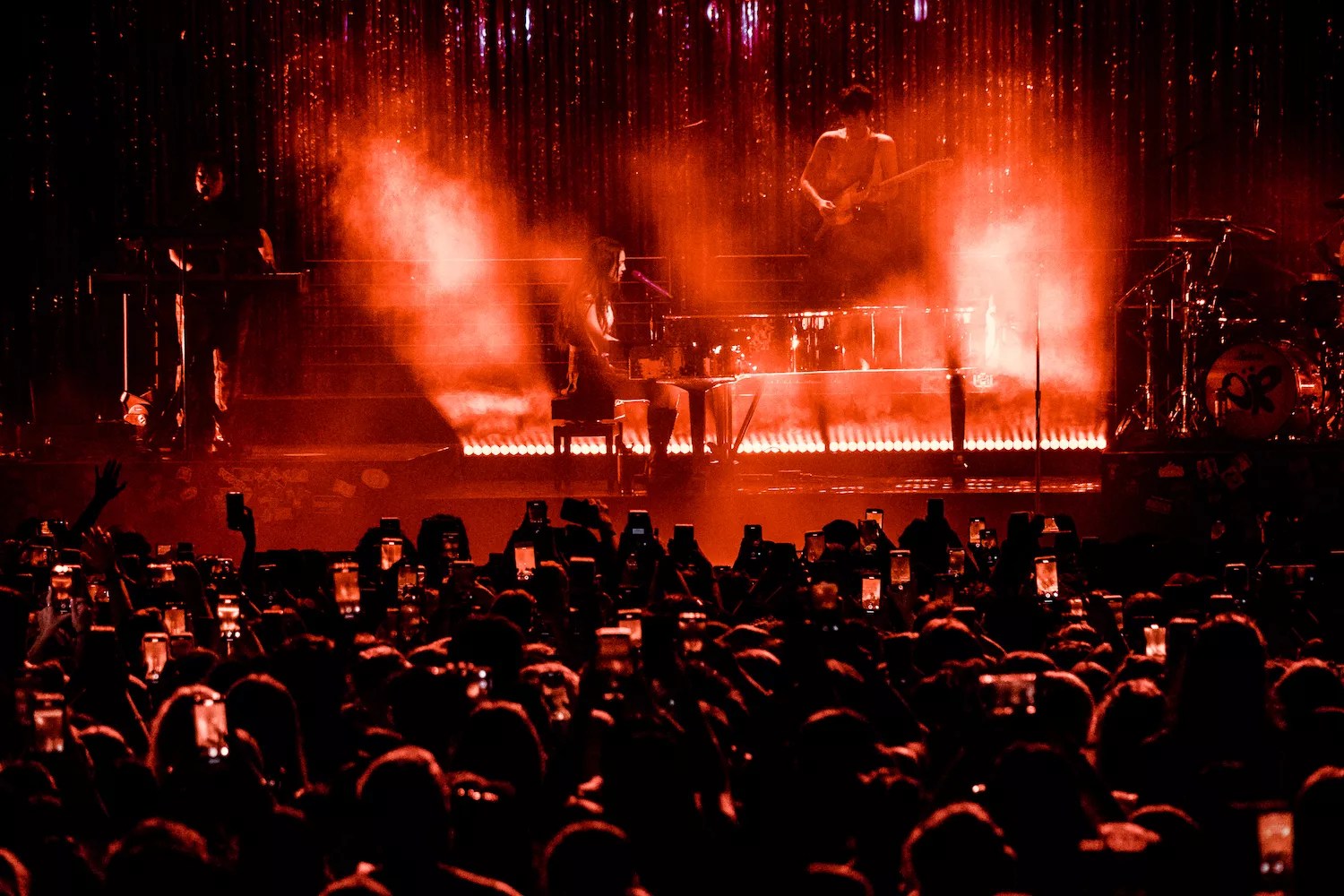 For fans lucky enough to score a ticket in the few minutes before they sold out, the night was a red-carpet event. Thousands of teens – primarily female and looking like they got their driver’s licenses just last week – waited in line for hours before the show in hopes of positioning themselves close to the front barricade. Dressed in lavender, butterfly-clad merch styled with plaid, platform boots and a trawlers’ worth of fishnet, they were decked out in proper pop-punk princess fashion. The crowd seemed like a supportive high school clique there to cheer on their theater-kid-turned-prom-queen best friend.