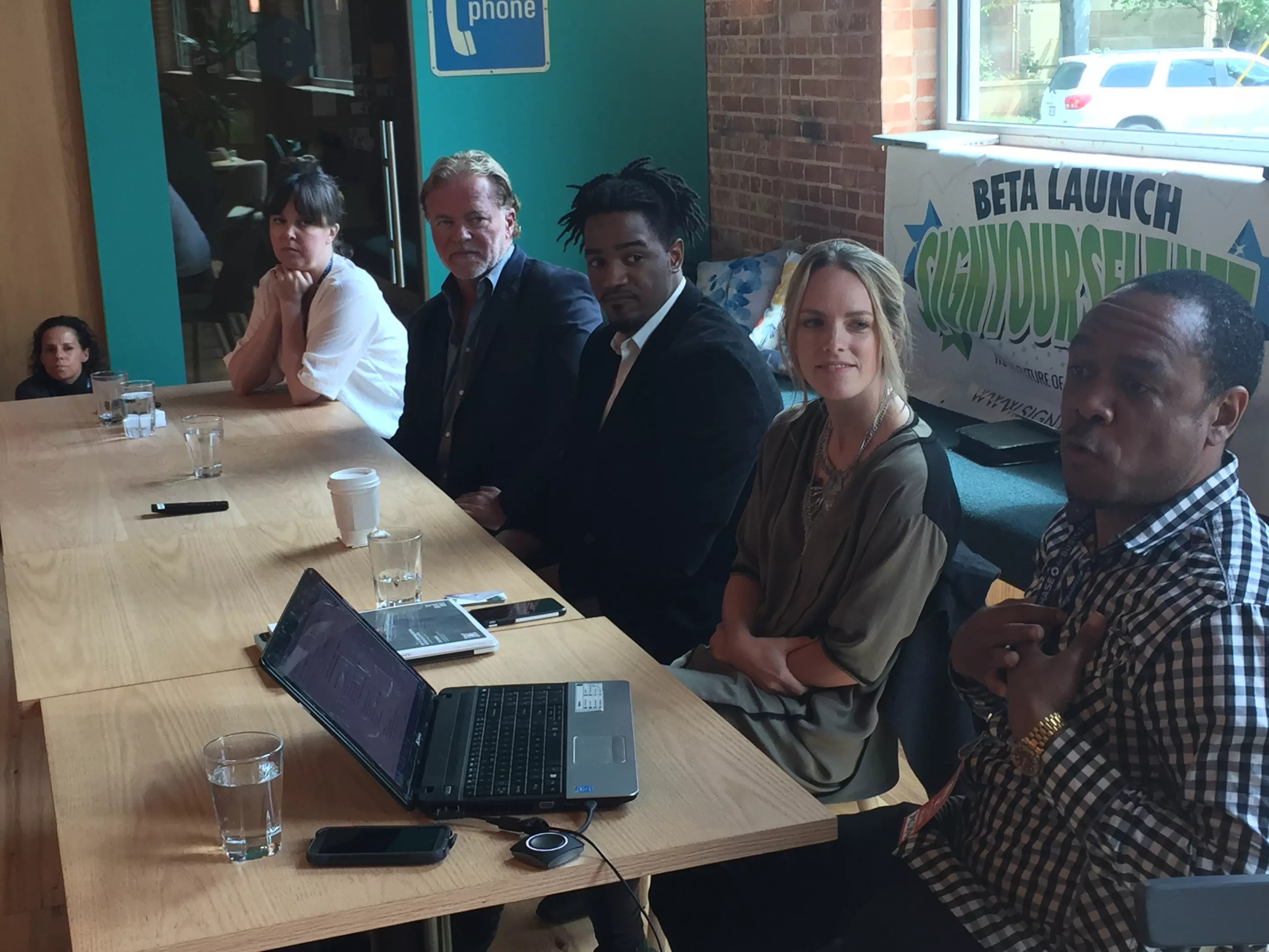 The speakers (from left to right): Kris Norvet, Jay LaFrance, Emmanuel Ibe, Merrick Porcheddu and James Jayson.