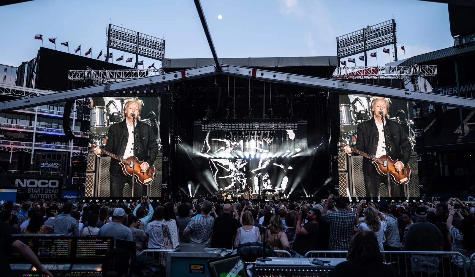 On Friday night, Paul McCartney played Globe Life Park’s first rock show. The stadium’s staff seemed unprepared to manage such a regal occasion, directing people to the wrong seats in the floor section, where rickety folding chairs were zip-tied together so closely that there was no wiggle room to move, let alone dance. But fans were too stunned to attempt any movement. It was soon after 8 p.m., and still in broad daylight, when McCartney appeared onstage.