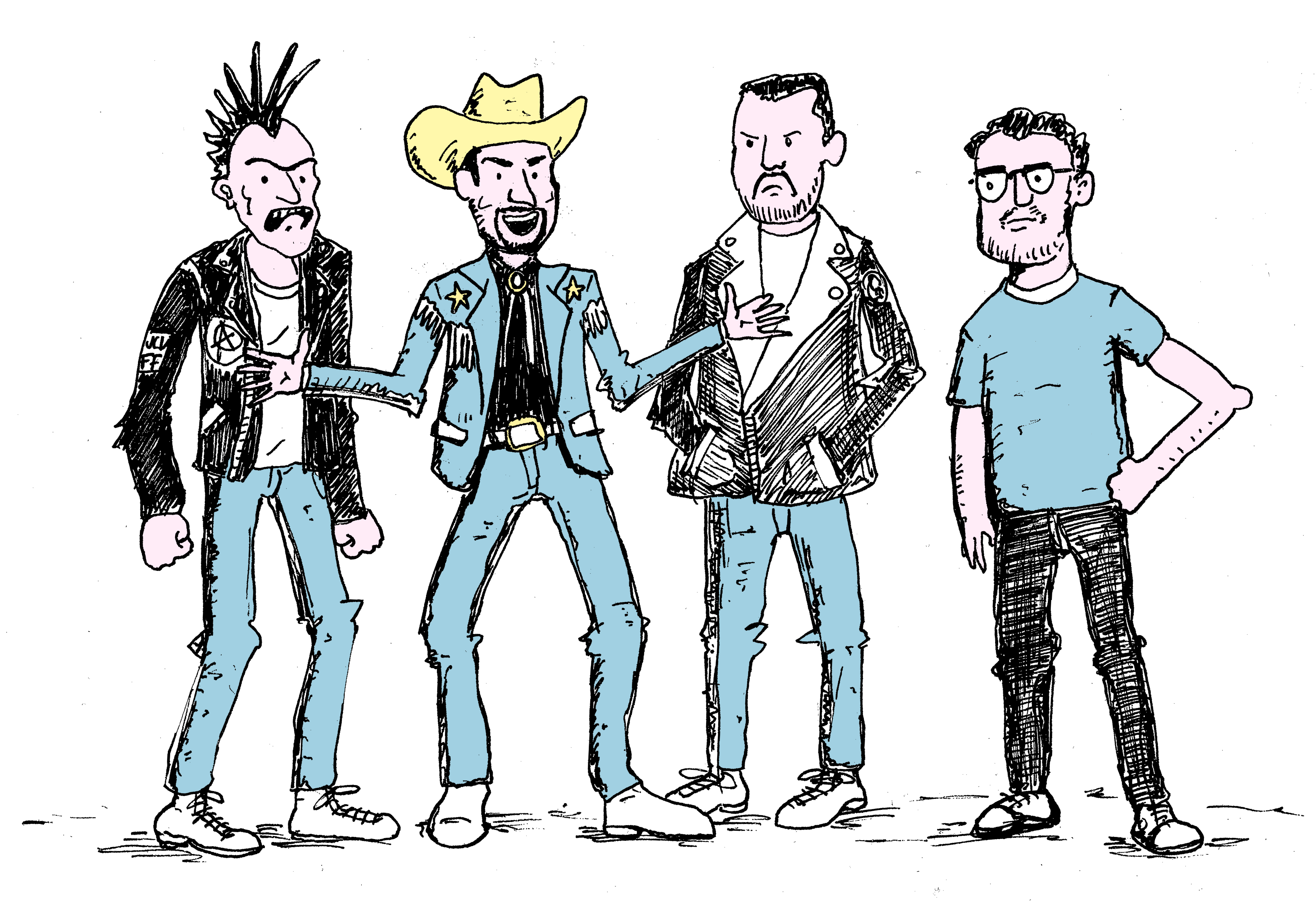 A punk, a rockabilly crooner, a metalhead and a drummer.