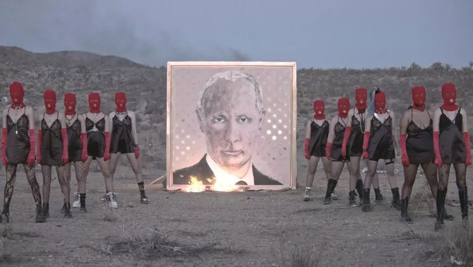 Putin’s Ashes is based on a Pussy Riot performance that took place in August 2022. During the performance, a group of women burnt a large portrait of Putin and cast spells upon him, with the goal of driving him away from leadership.