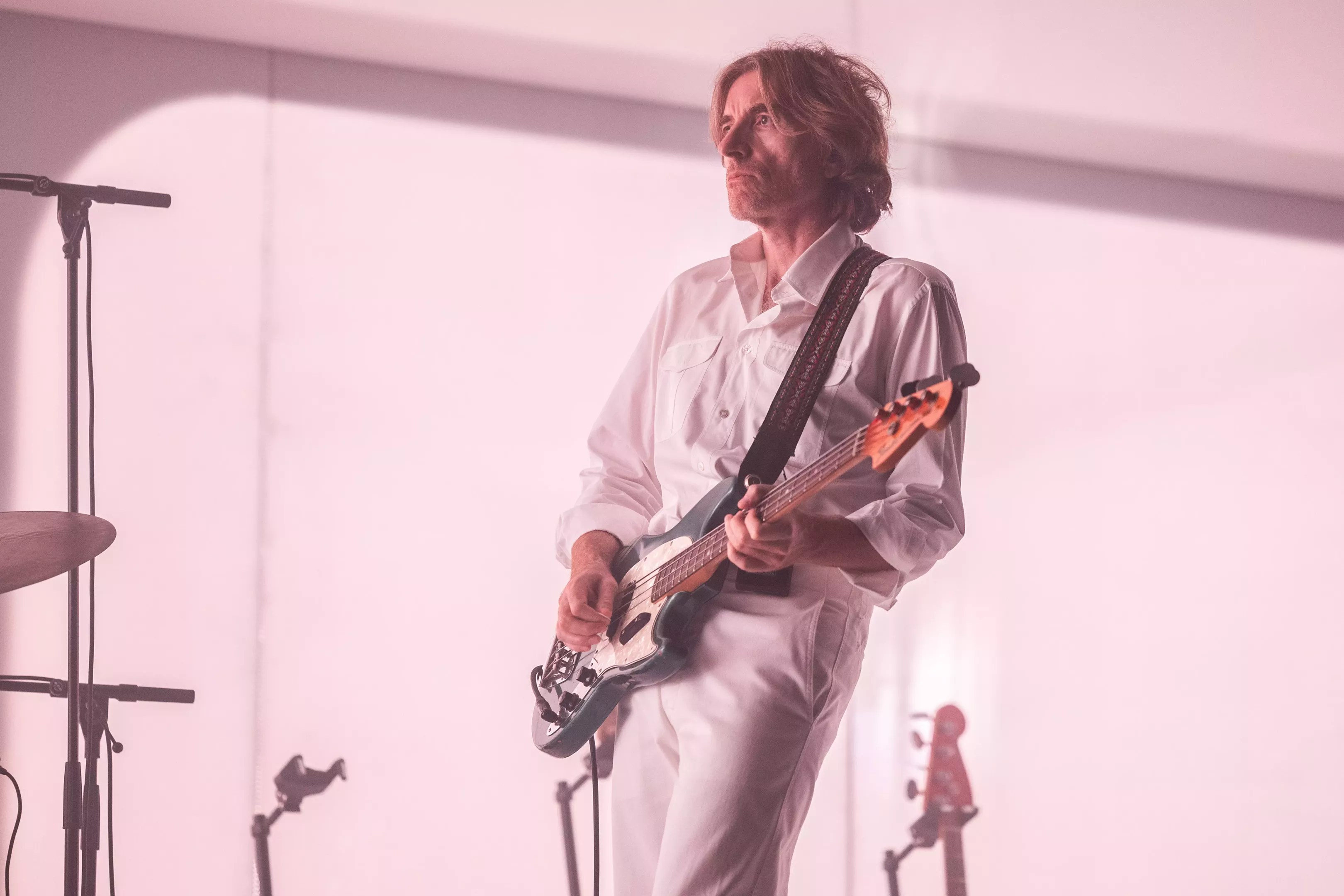 Each musician was dressed in spotless white attire, and their instruments – save the guitars and basses – were likewise neutral.