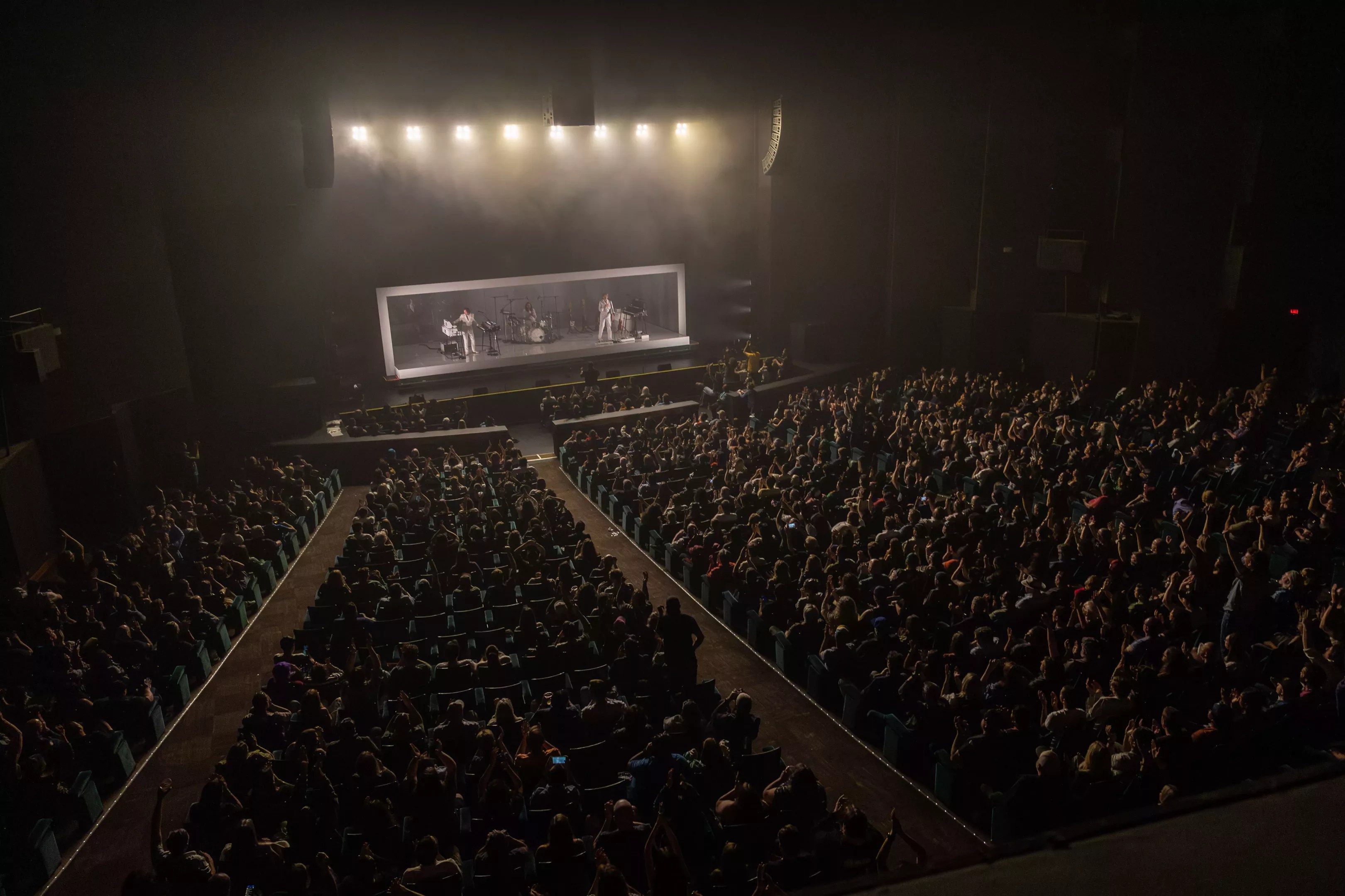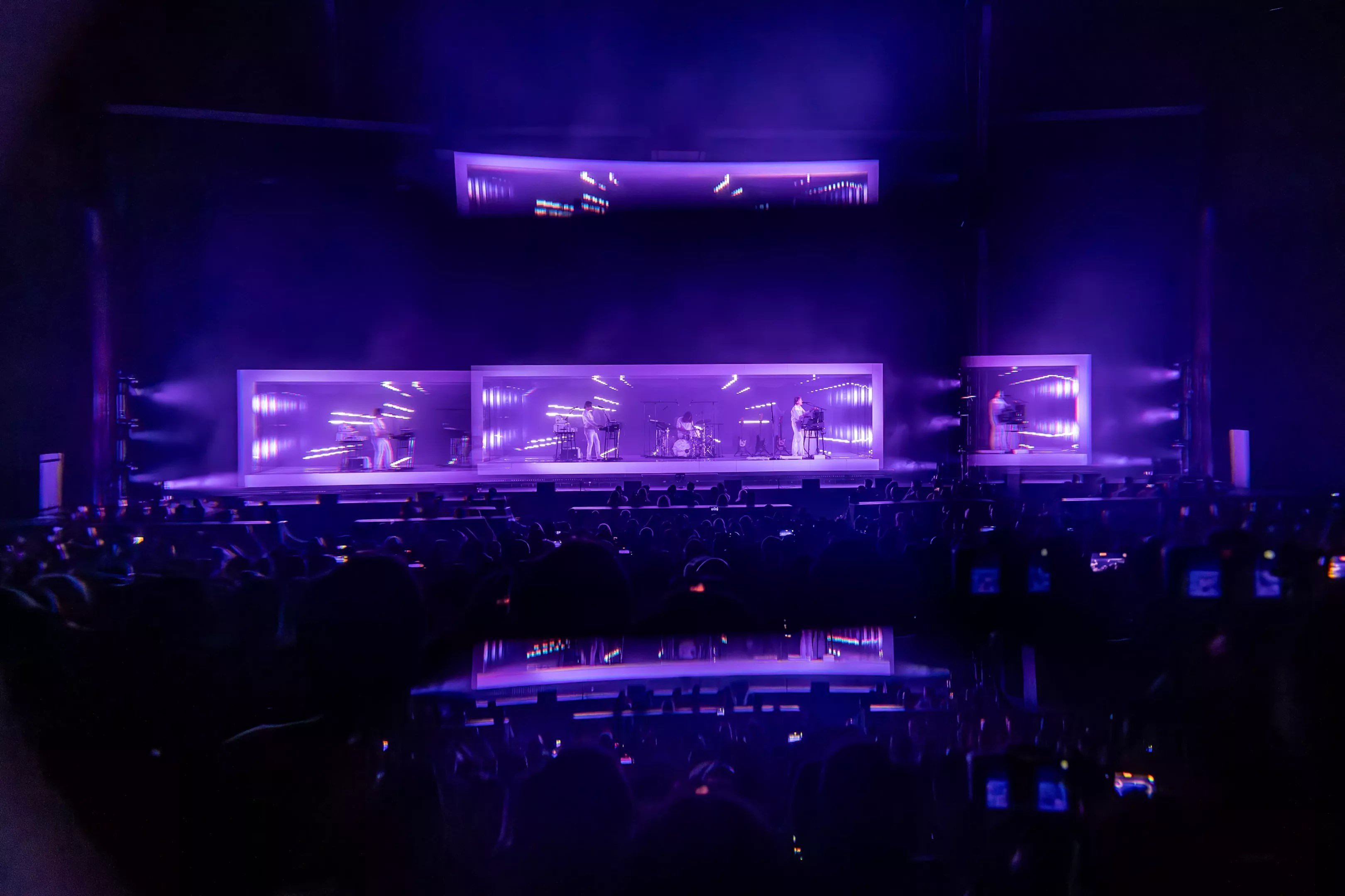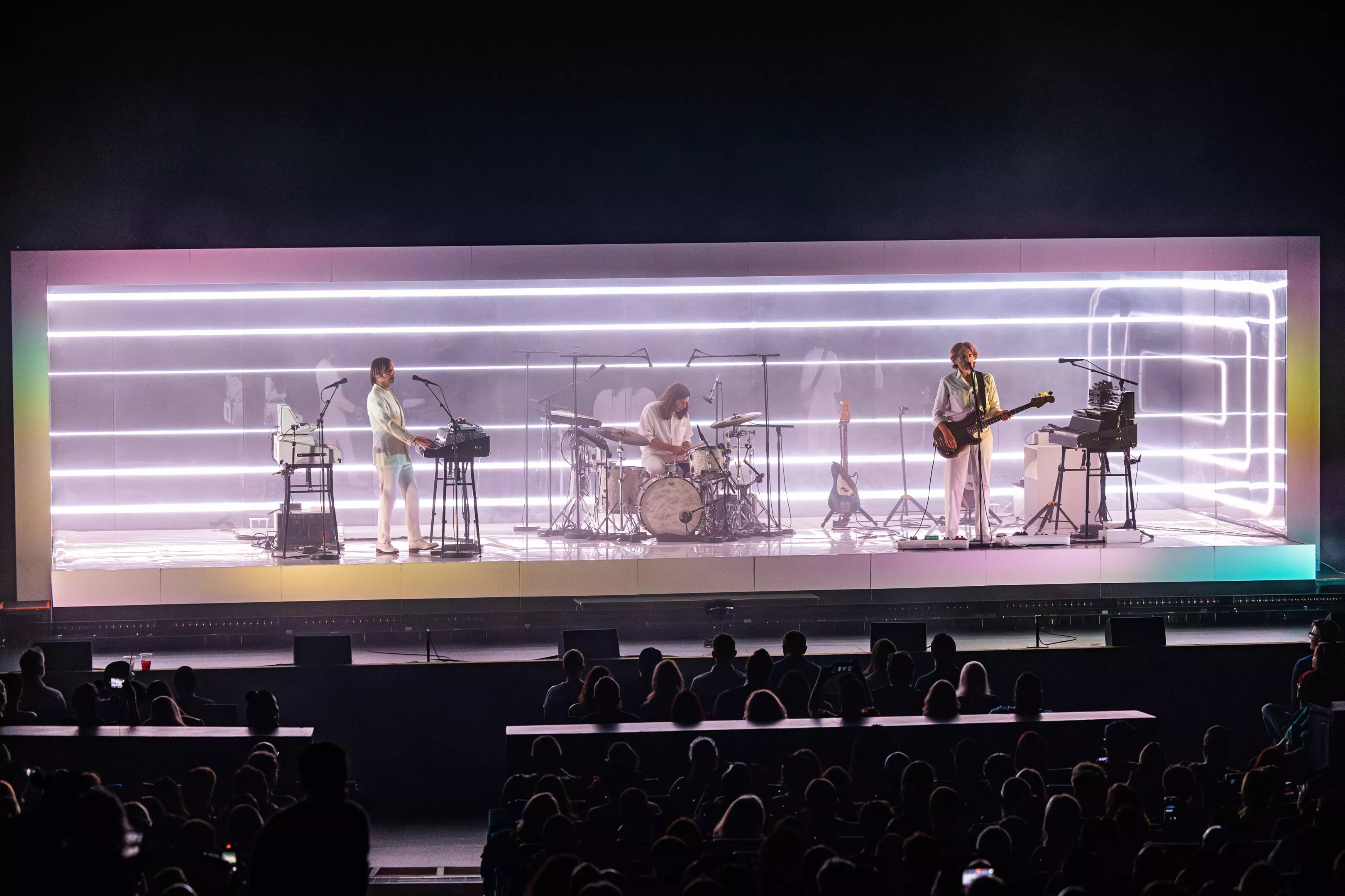 With a blank canvas, however, Air applied eye-catching visuals, elevating the already intoxicating atmosphere. Shimmering stars behind, above and below the men making music for one moment; the striking evocation of a sunset during “Radian,” or the stuttering spotlights stabbing the pitch darkness during “Run” – the crisp synchronization was utterly transporting. Throughout, the audience, which frequently leaped to its feet for standing ovations, was dipped in vibes, bathed in mood and drenched in light and sound.
