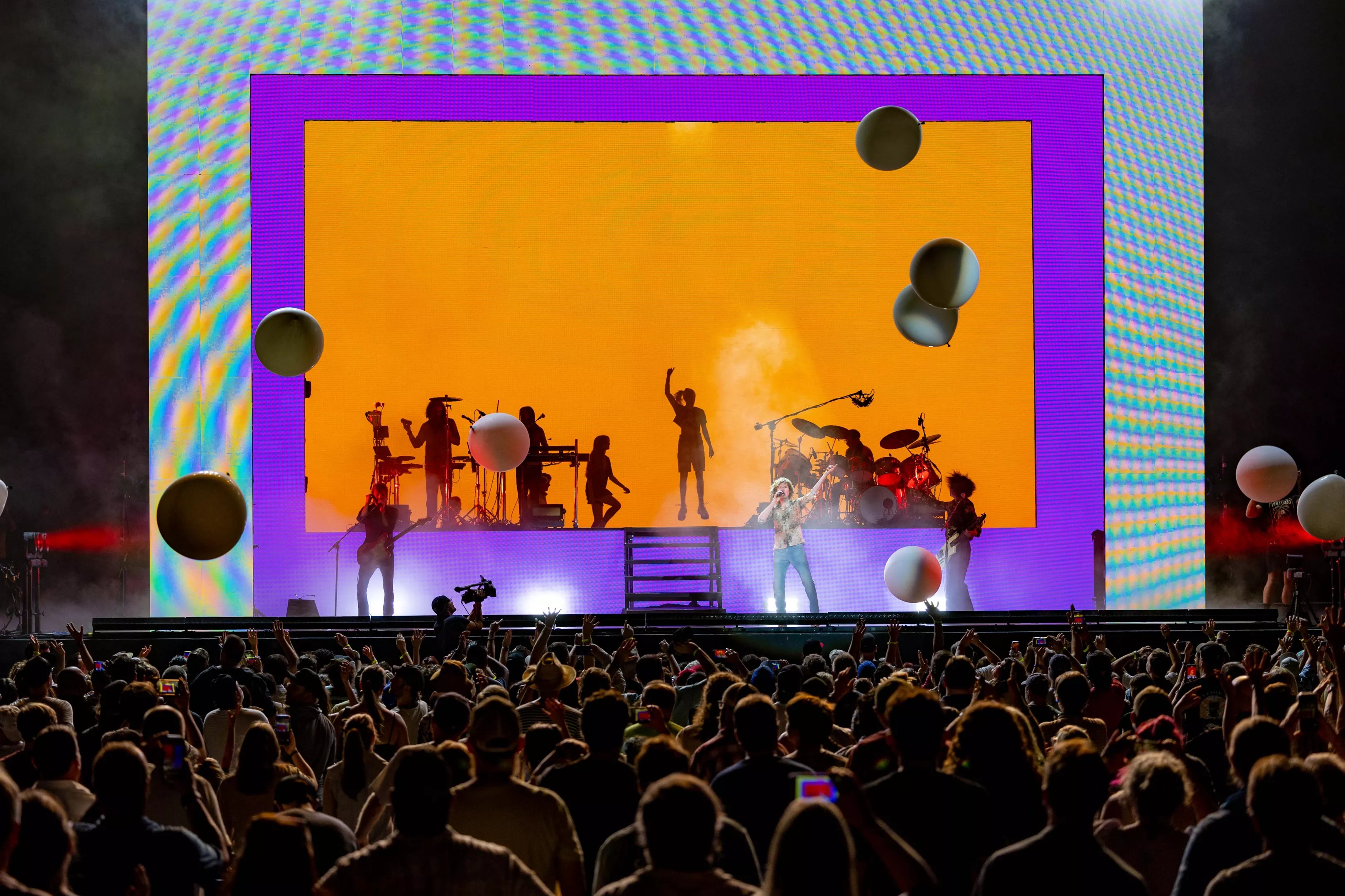 Once the sun was almost behind the back wall, the first headliner of the night hit the stage. Phoenix is one of the most successful French rock bands to break through in the States. They formed in ’95 and won a Grammy for Best Alternative Music Album with their breakthrough album Wolfgang Amadeus Phoenix. Although it took a little while for it to get dark enough, the lights and video show were outstanding.
