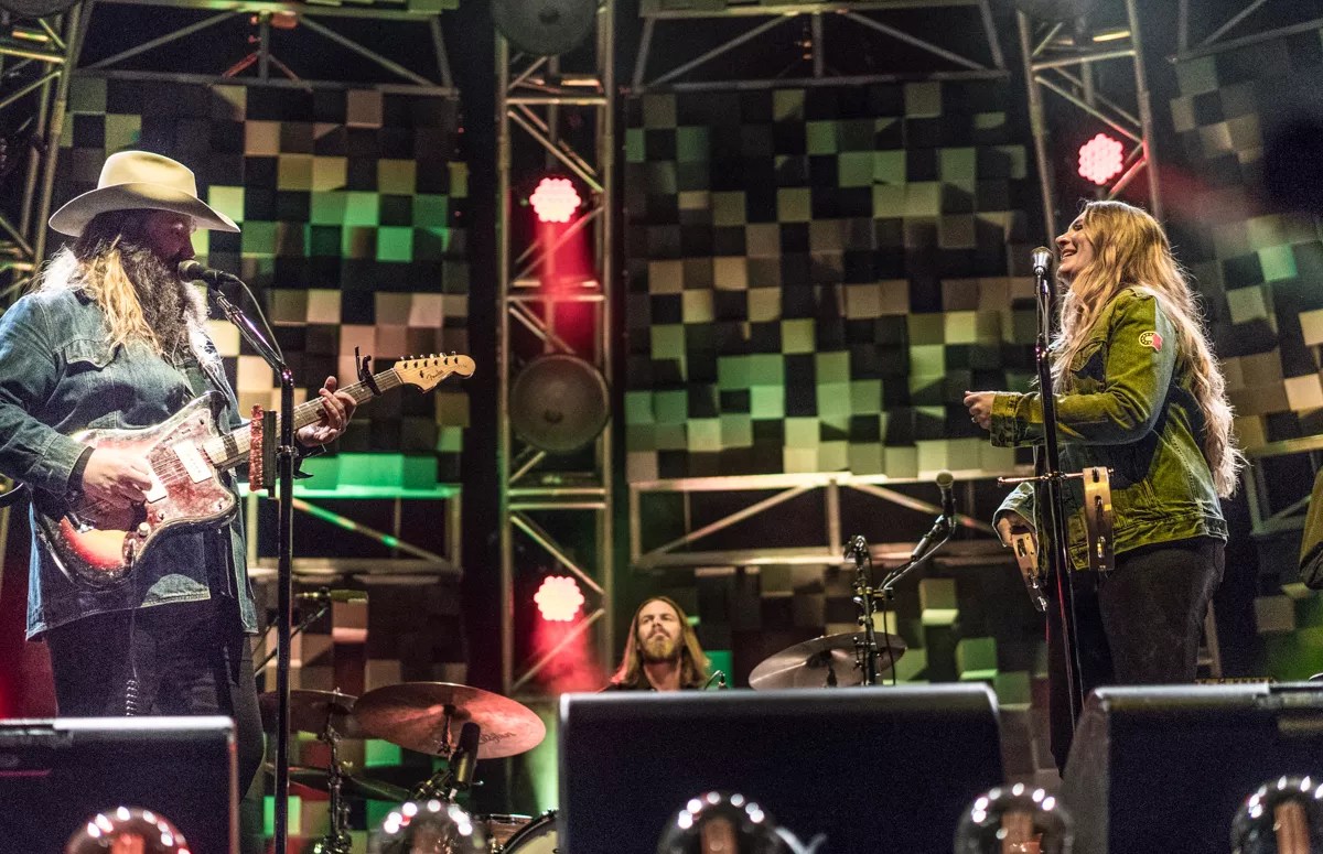 Near the end the night, Stapleton made a major announcement as he introduced his bandmates by riffing on “Tennessee Whiskey.” His wife, Morgane, who played with him onstage, is expecting twins.