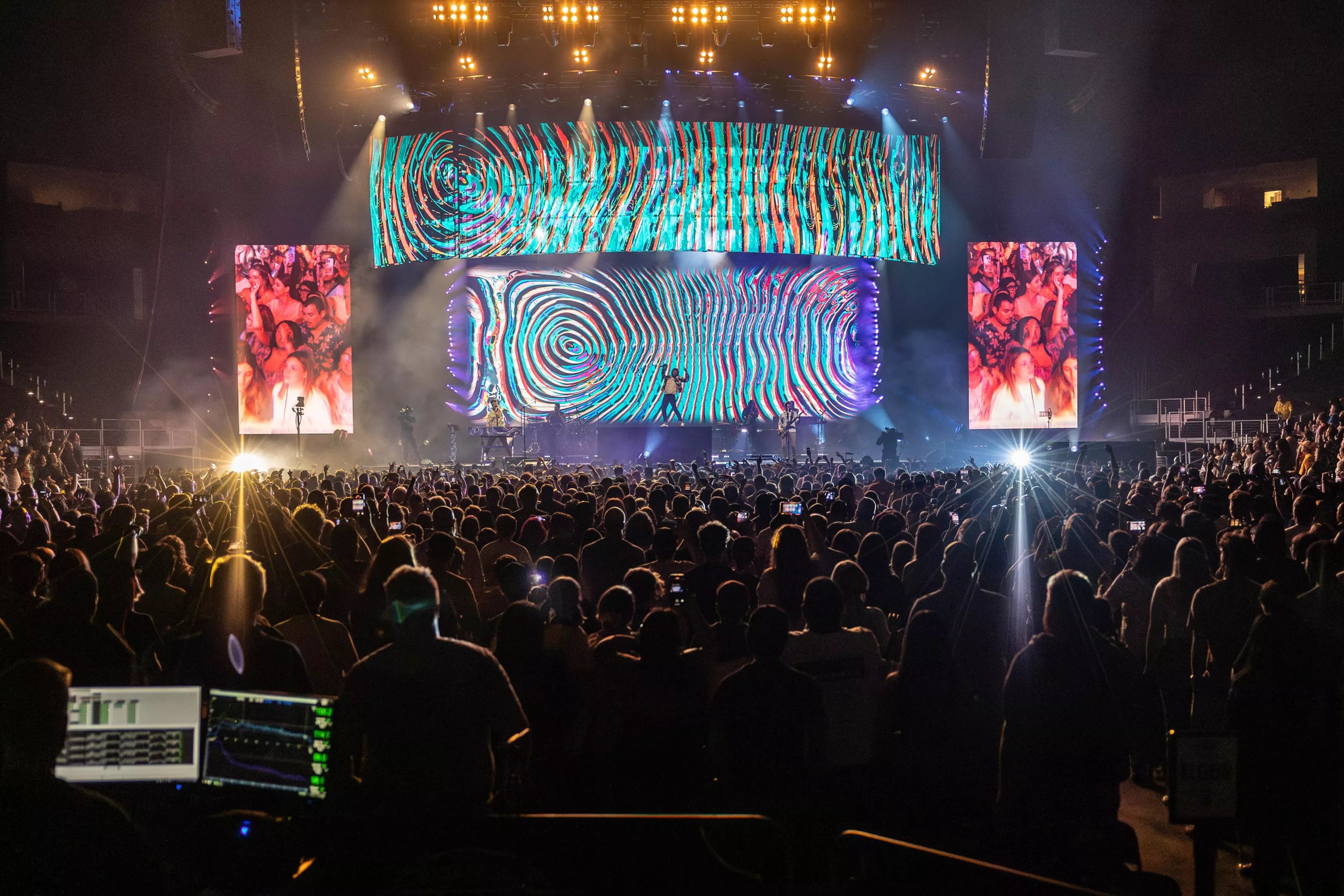 The highlight of the concert came when the boys returned to the stage and showed how one of their signature songs, “Way Less Sad,” was produced. Ryan shared anecdotes of recording plates dropping in a cafe, as a restaurant setting displayed on screen. Then, he recalled Jack watching home videos on his phone while studying in a college library (which is why he said this song was 20 years in the making, despite the boys being only in their early 30s).