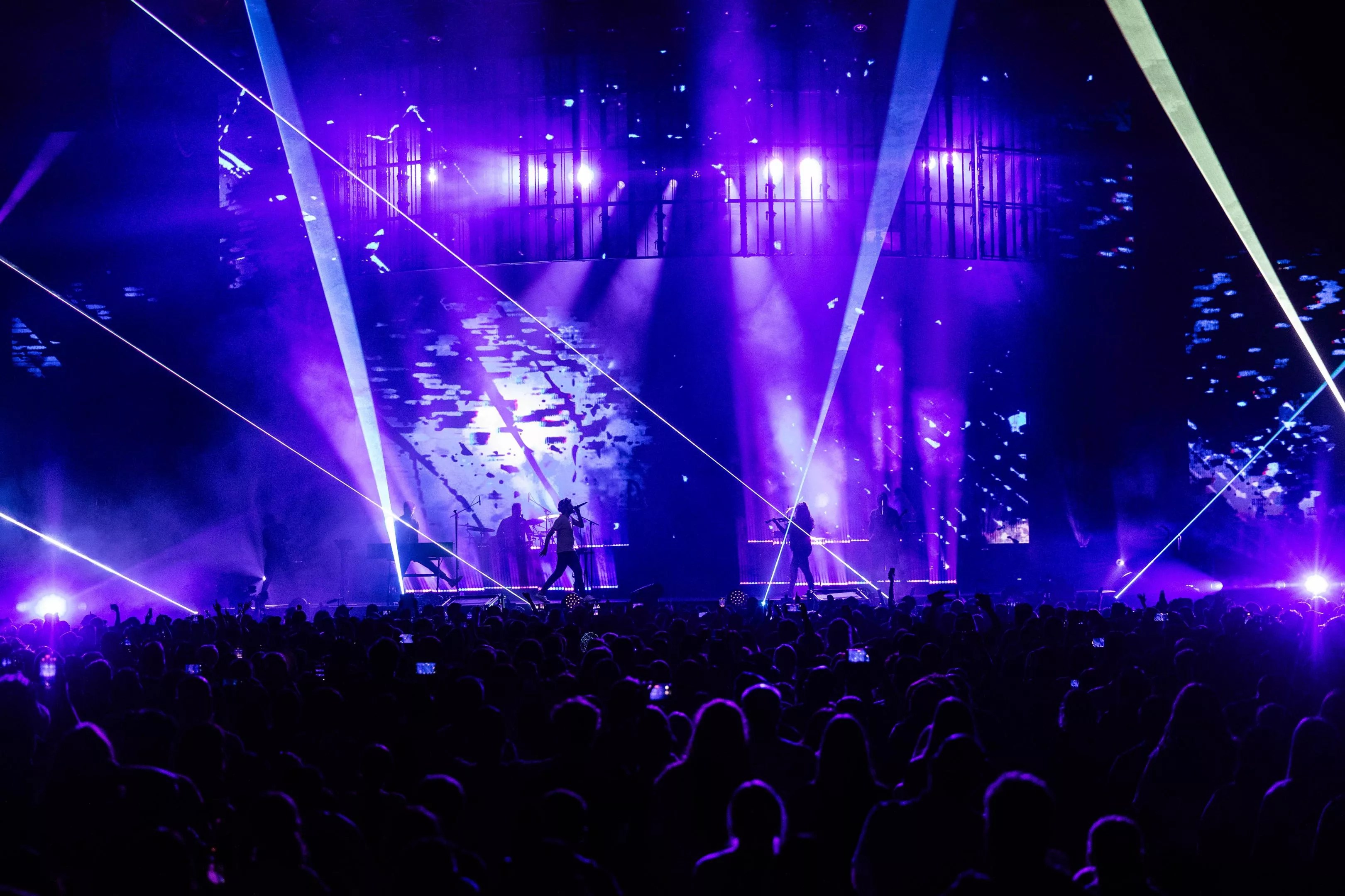 A large, IMAX-like screen created multiple scenes throughout the show, visualizing different chapters of AJR’s life. During the performance of “Yes, I’m A Mess,” Jack was seen on top of a screen displaying a suburban neighborhood, as he moved across a treadmill simulating riding a bike. He moved perfectly on time with the display, as it switched from a neighborhood to an office setting.