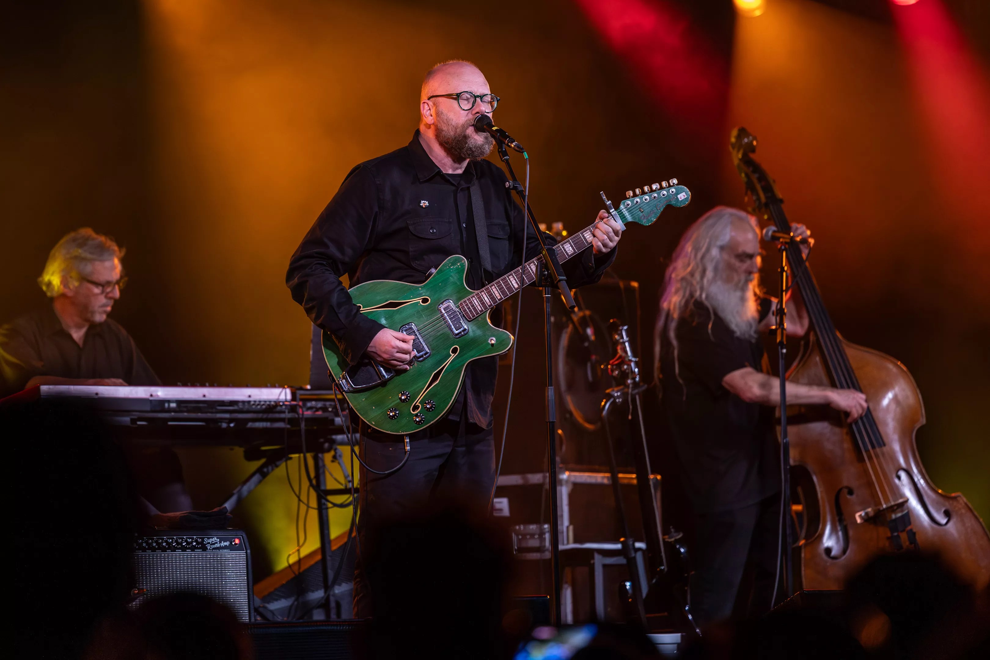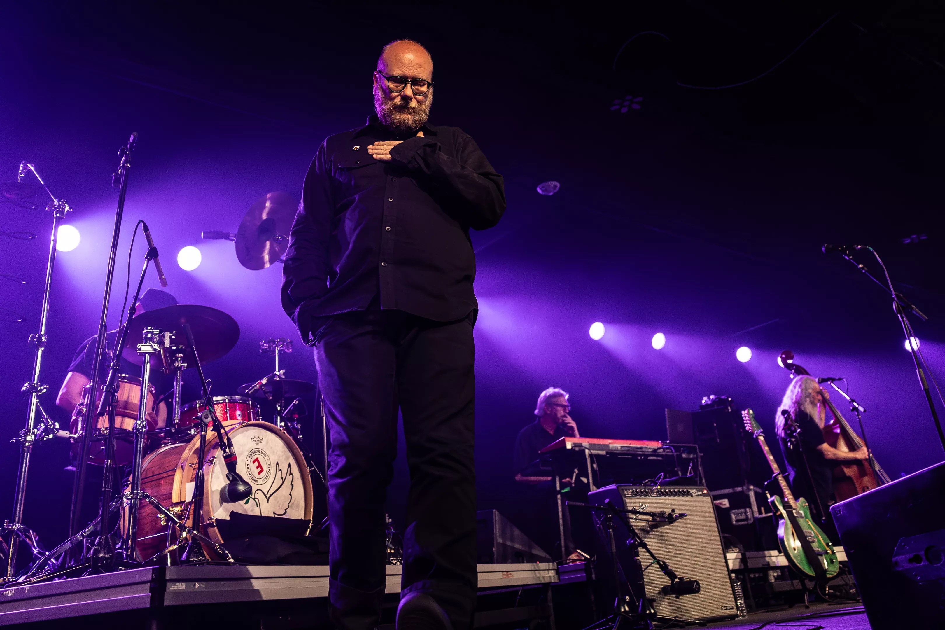 The highlights were plentiful: Steinberg’s upright bass work was nigh impossible to look away from all night, his gray mane trembling as his fingers worked the fret, occasionally offering backing vocals to Doughty’s adenoidal deadpan. Gabay’s triphammer rhythms, syncopating the samples and keyboard flourishes deployed by degli Antoni. Doughty fussing with his glasses before leaning in to spit a barrage of words, every syllable a rabbit punch in the air, the cadence as martial as a drumbeat or as laid-back as the bend in a river.