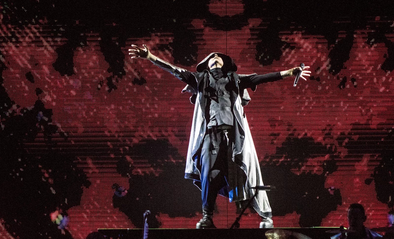 After people found their seats to the sounds of Metric, the Great Pumpkin came out alone just shy of 8:30 p.m. Wednesday. Backed by a stage and light setup that looked like the classic film Metropolis, the presentation was retro with a futuristic bent. There had been reports of initially soft ticket sales in many of the markets outside of Chicago, but the AAC was almost filled to the brim with fans. (The upper nosebleed section was closed off.)