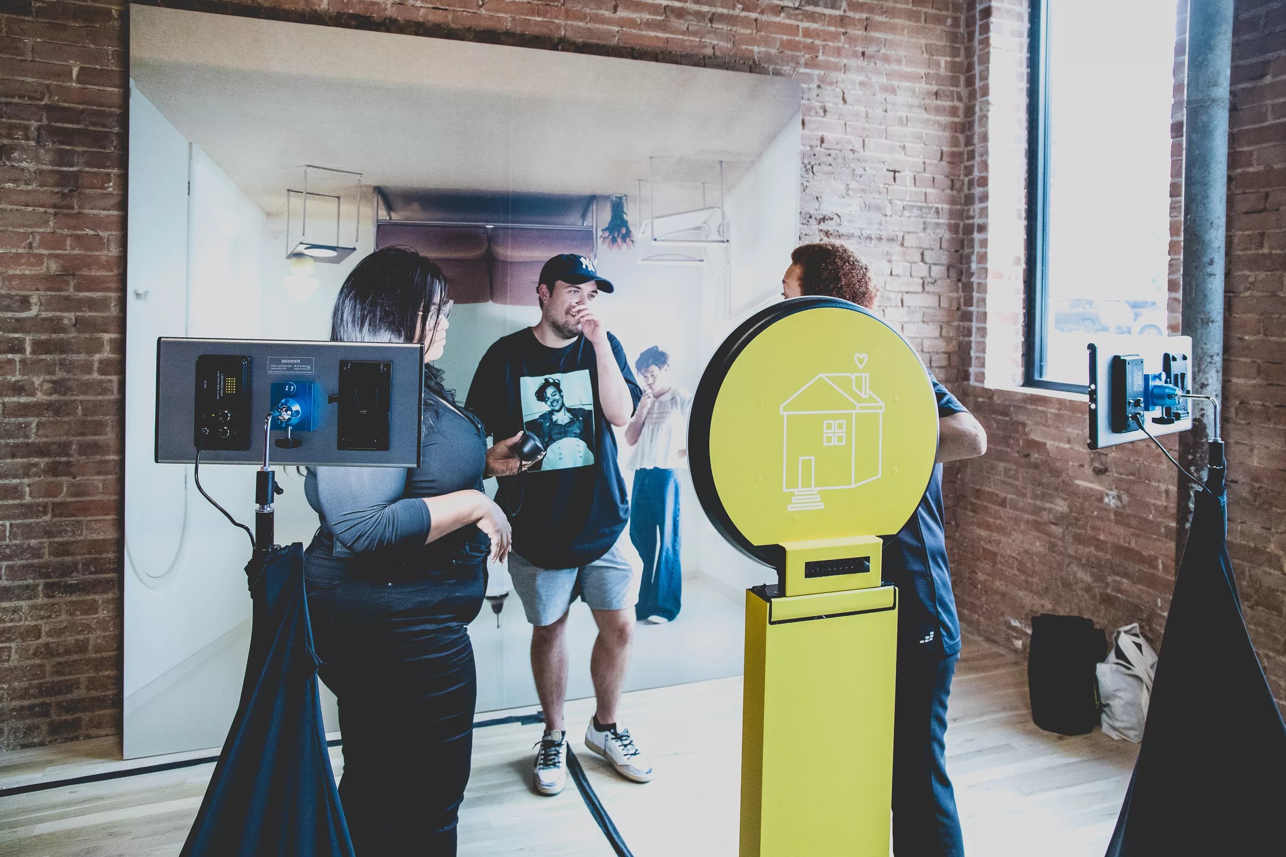 Shoppers were given a sheet with the selection and boxes with check marks to give to the cashiers, which they took before disappearing behind a curtain later to come back with the goods, yelling out customers names. Beyond the front were several more photo opportunities: a blue house with the door and windows cut out, three selfie photo booths each with the reoccurring color scheme of yellow, blue, and orange, and in the very back an iPad TikTok station to take a photo or mini video as if you were on the set of the album cover.