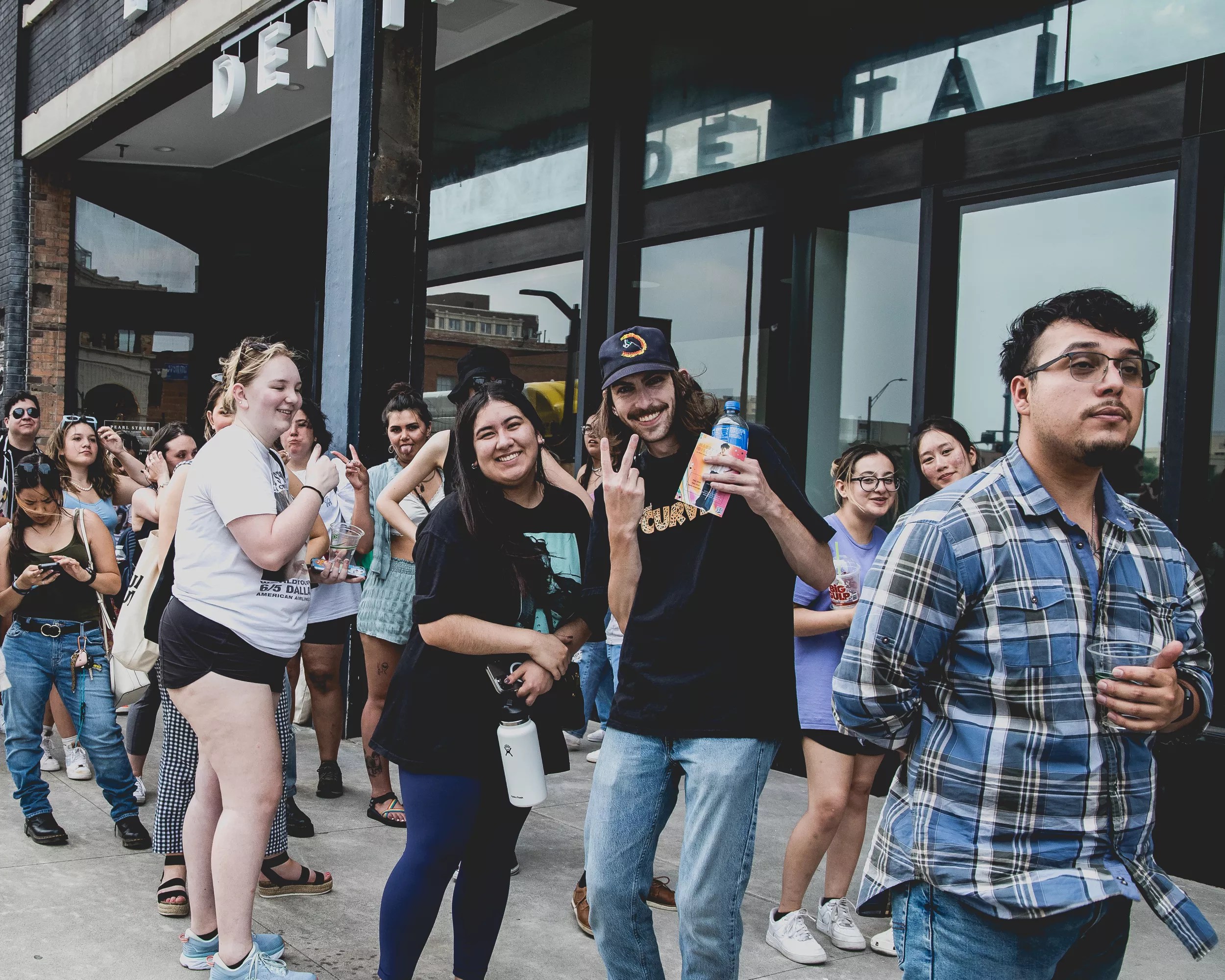 Even with the heat rising, the line to enter the shop wrapped around the 2117 block of Commerce Street all the way to Pearl, then formed another line in the opposite direction toward Cesar Chavez. Several fans blasted the new album on bluetooth speakers, many conversing excitedly with each other about their favorite new tracks, others comparing and admiring each other’s Styles shirts they were wearing for the occasion.