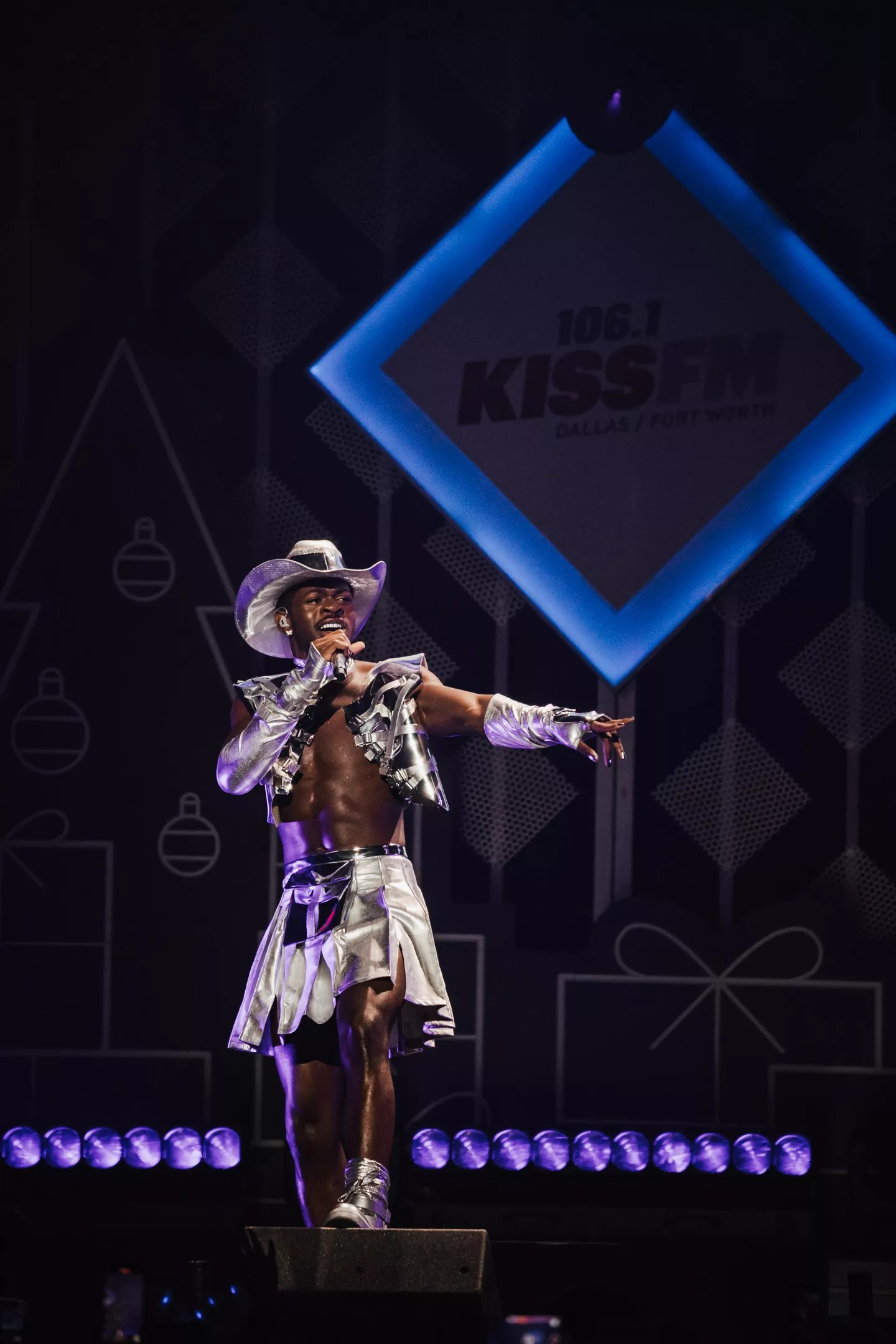 Next up was the one and only Lil Nas X. Dickies Arena made the most appropriate place for the “Old Town Road” singer to don a sparkly cowboy hat as he performed the hit song with a slew of backup dancers, as well as hits from his latest album, Montero. The star set the tone for the likely spectacle for his own upcoming tour.