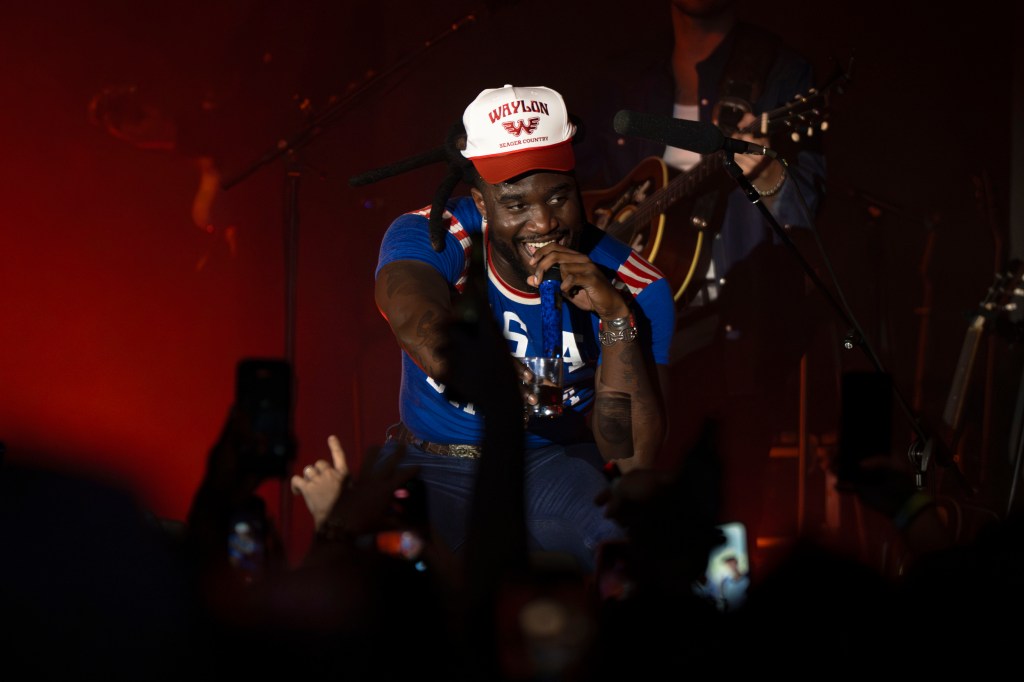 Even though this was a mostly adults-only party, Shaboozey acknowledged that there were young kids who were his fans. After bringing out Kevin Powers again to perform their song “Move On,” he stopped to address the crowd, thanking everyone for coming out. He signed hats, showing love to a kid in the front whose first concert was his. Calling his fans in Fort Worth his “family,” it led into his cover of Hank Williams Jr.’s classic “Family Tradition.”