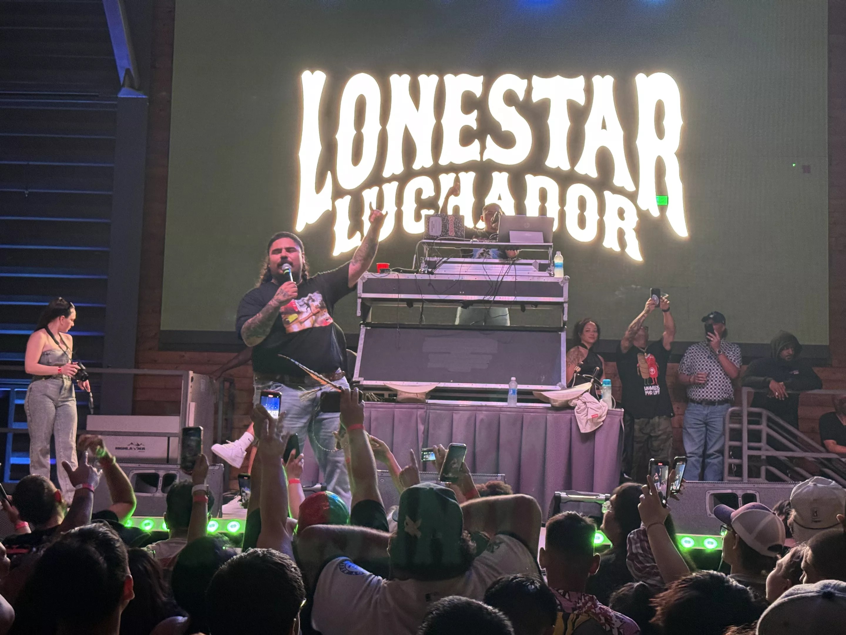 At this hour in the evening, a mix of Plano residents, Tejanos, people wearing luchador masks and kids who look up to the Bay City rapper had packed out the venue. After Drodi’s solo set, it was time for OT. DJ Skelz brought the fiesta vibes with Los Tucanes de Tijuana’s “La Chona” before instructing fans to put their phones up and flash on. A little bit after 9 p.m., OT came out to fans screaming, asking us how we were doing as he looked comfortable in jeans, a sparkly Western belt buckle and a black shirt, his mullet flowing.